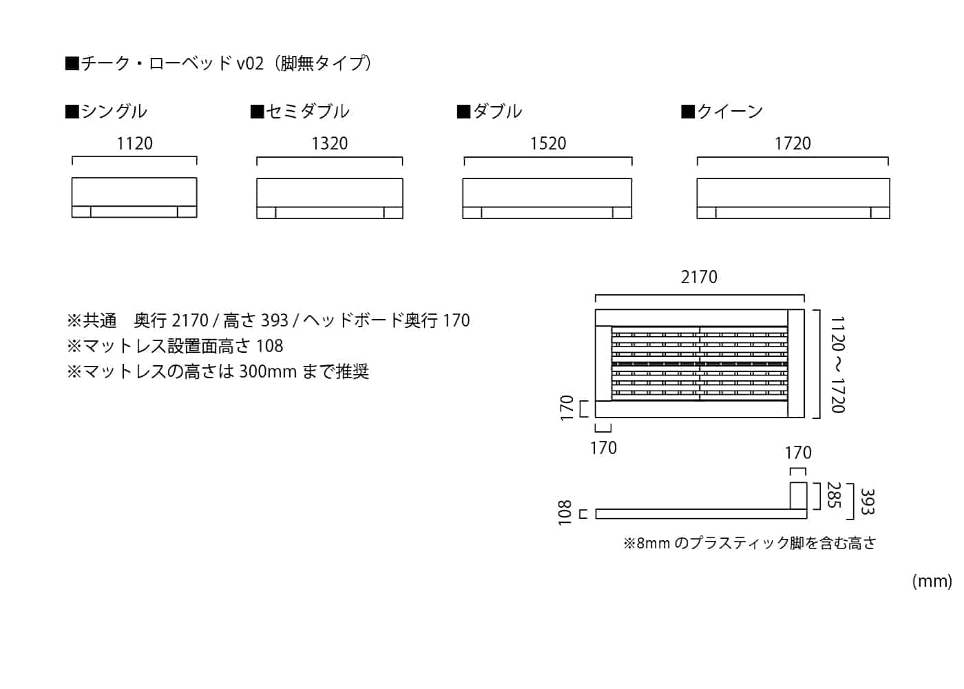 奥行 2000 / 高さ 300mmまで(高さは推奨となります。300mm以上のマットレスも設置可能)