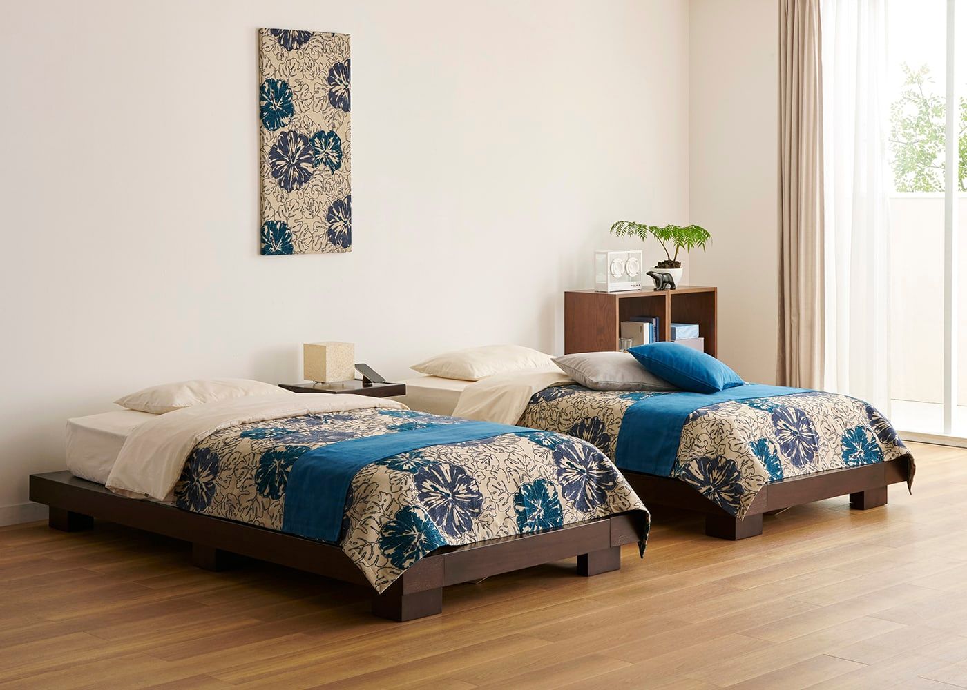 ホテルライクな寝室作り 寝室をホテルライクなリゾートコーディネートで整えることで、非日常感のある快適なスペースに変えることができるでしょう。 詳細ページへ ベッドフレーム 「ホテルライク」「開放感」 「癒し」 「収納力」をコンセプトにした4タイプのベッドからお気に入りを見つけてください。 詳細ページへ レイアウト・家具配置 身体を休める、書斎と兼用したい、収納力を充実させたいなど、ライフスタイルと合うレイアウトや家具選びを考えてみてください。 詳細ページへ 快眠マットレス 「コイルタイプ」、「スプリングタイプ」など様々な種類のマットレスをご用意しています。あなたに合った寝心地で選びましょう。 詳細ページへ 布団・毛布・枕・カバー 寝具は季節に応じて選び、組み合わせて使うことが重要です。「布団」「毛布」「ベッドパッド」 などの特長を解説します。 詳細ページへ 寝室のインテリア ベッドや寝具以外のインテリアにもこだわってみませんか?おしゃれな寝室を叶えるたくさんのインテリアをご覧ください。 詳細ページへ 寝室の模様替え 寝室は家具以外の部分を変えるだけでも、簡単に模様替えできます。気軽にベッドファブリックや他の装飾で模様替えしてみては? 詳細ページへ ベッドサイズ・一覧表 ベッドサイズは使用人数や体格、部屋の広さから検討していきます。ライフスタイルに合わせたベッドサイズを選びが大切です。 詳細ページへ