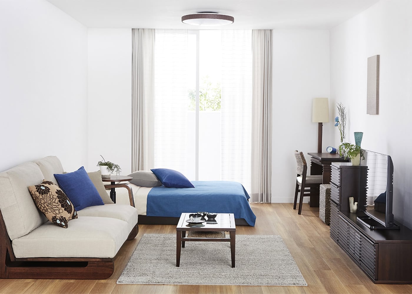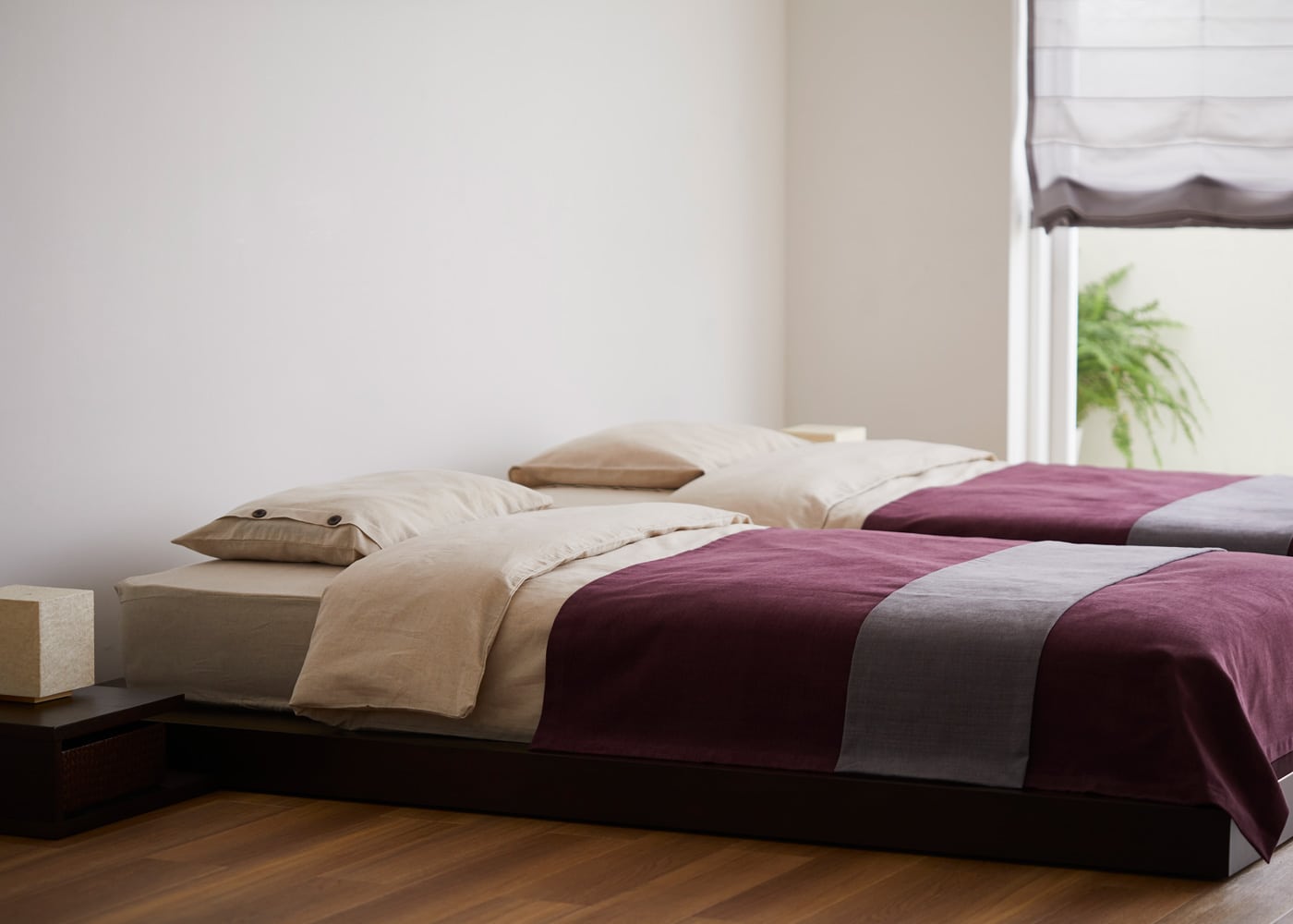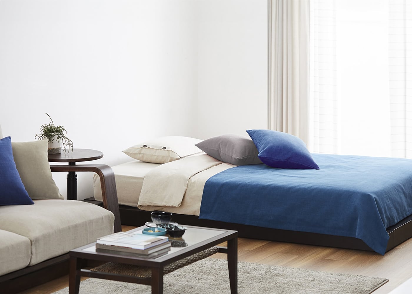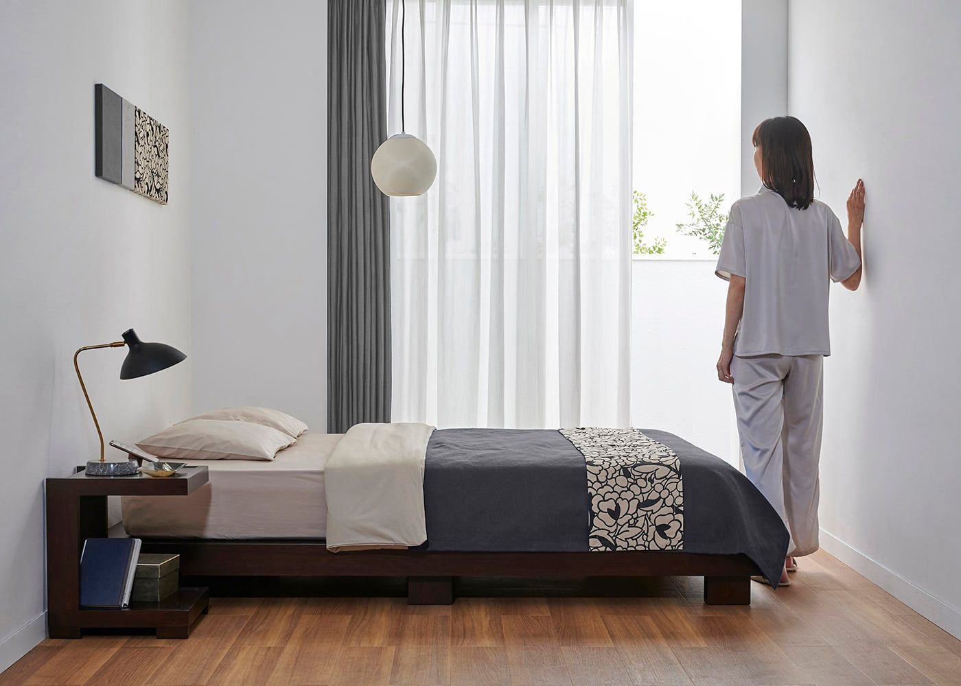 ベッドの上にかけるだけで、寝室にちょっとしたアクセントをあたえてくれるベッドスプレッド&スローをご用意しています。約100色のファブリックから素材や色を選んで、お気に入りのベッドスプレッド&スローを作ってみては。リゾートの風と自然を感じる6つのa.flatスタイルカラーの中から、あなただけのカラーコーディネートをお楽しみください。(別売、受注生産)