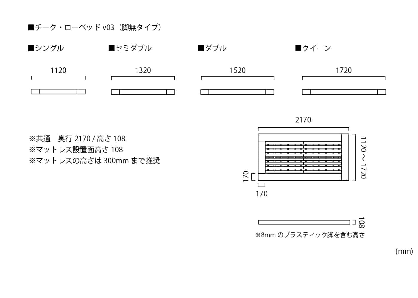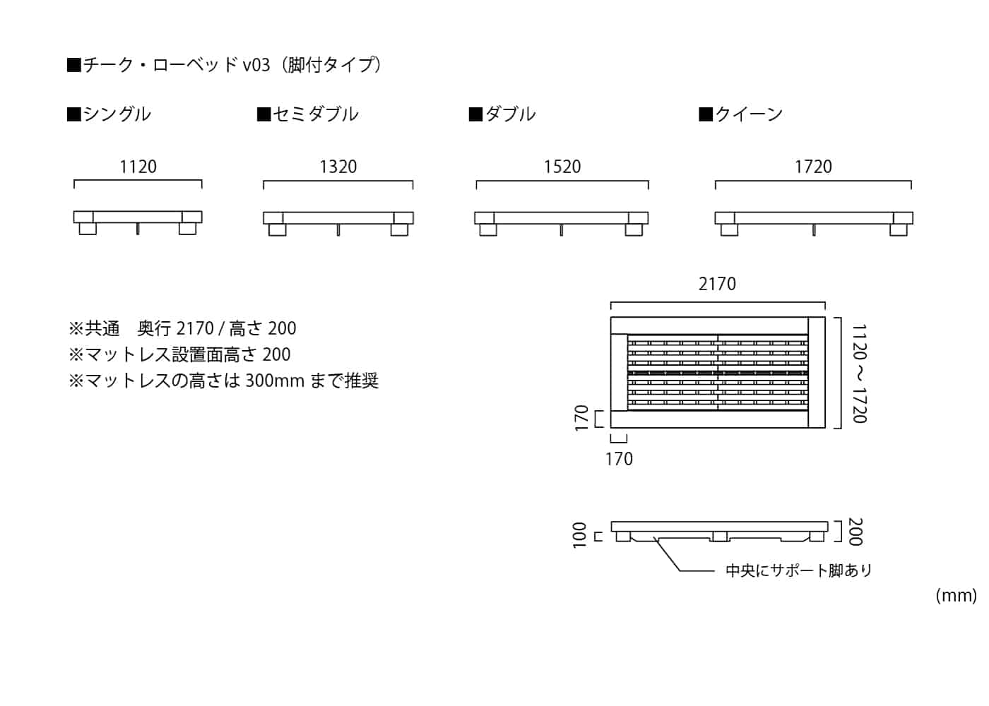 奥行 2170 / 高さ 300mmまで(高さは推奨となります。300mm以上のマットレスも設置可能)