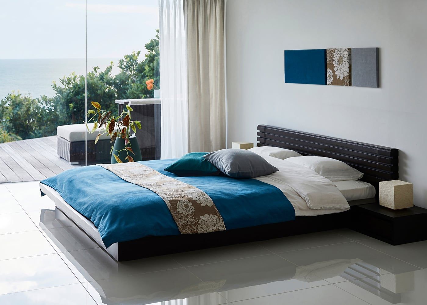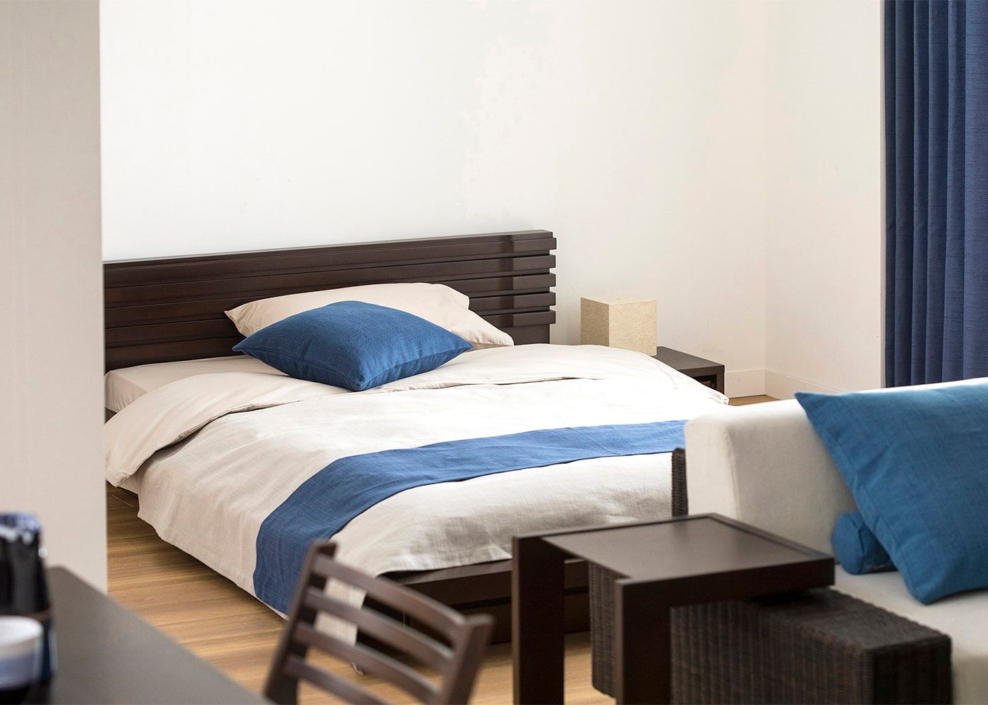 ベッドの上にかけるだけで、寝室にちょっとしたアクセントをあたえてくれるベッドスプレッド&スローをご用意しています。約100色のファブリックから素材や色を選んで、お気に入りのベッドスプレッド&スローを作ってみては。リゾートの風と自然を感じる6つのa.flatスタイルカラーの中から、あなただけのカラーコーディネートをお楽しみください。(別売、受注生産)