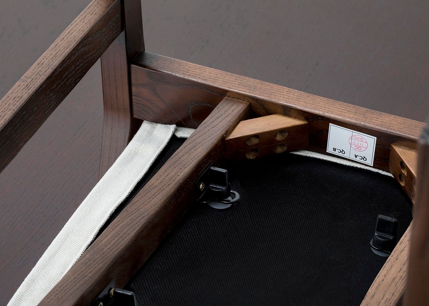 座面は本体フレームとネジで固定されたシンプルな設計です。チェアカバーを交換する時に、工具を使わずに指でネジを回すだけで簡単に座面を外すことができるのがa.flatチェアの特長です。