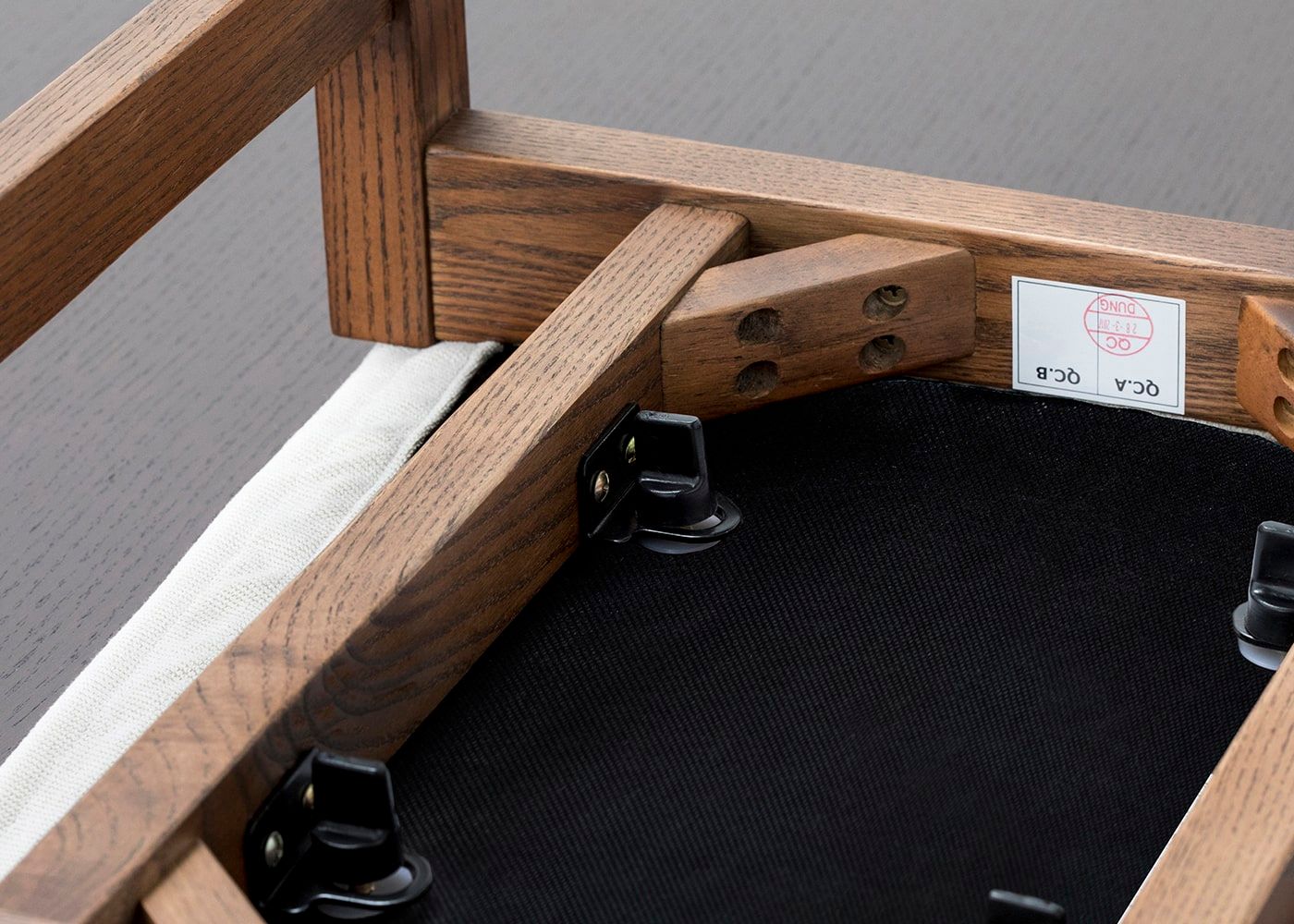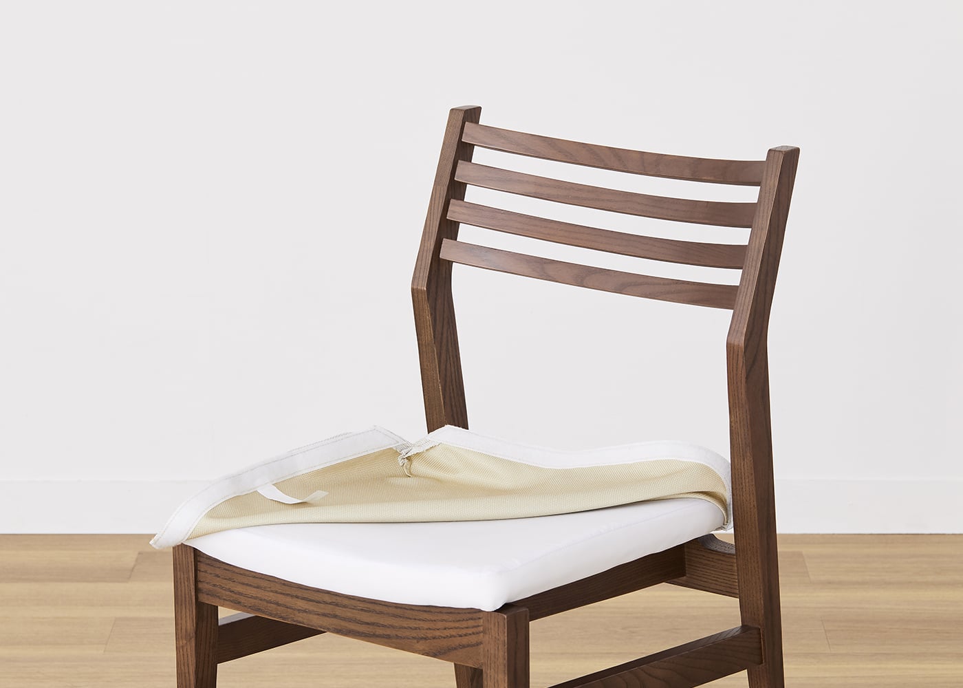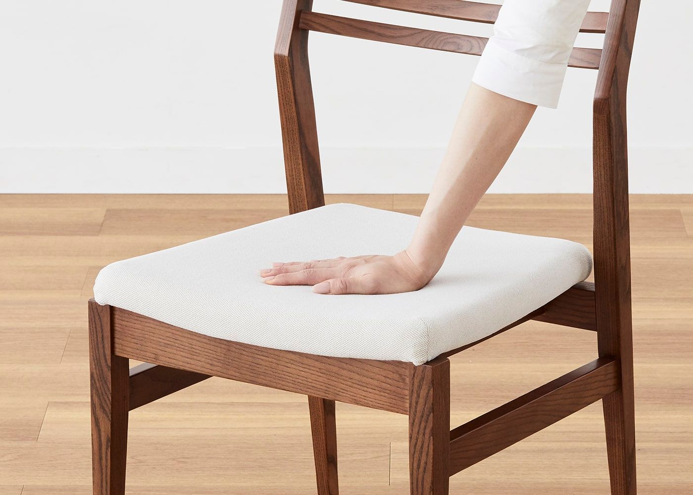 座面は本体フレームとネジで固定されたシンプルな設計です。チェアカバーを交換する時に、工具を使わずに指でネジを回すだけで簡単に座面を外すことができるのがa.flatチェアの特長です。