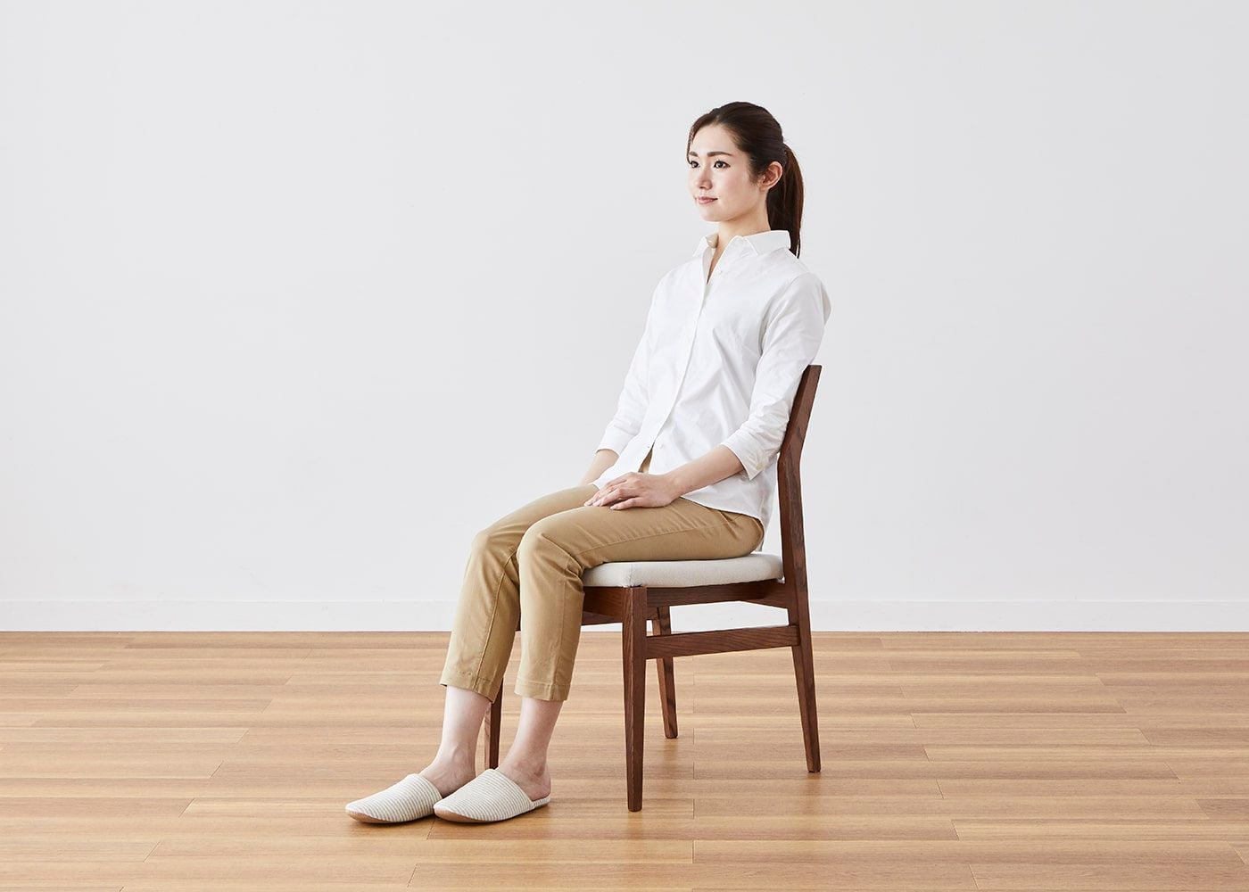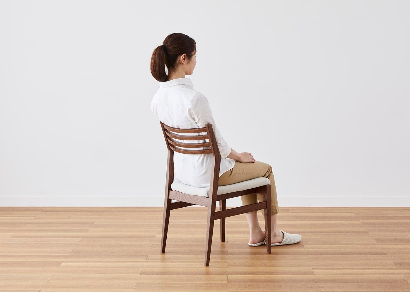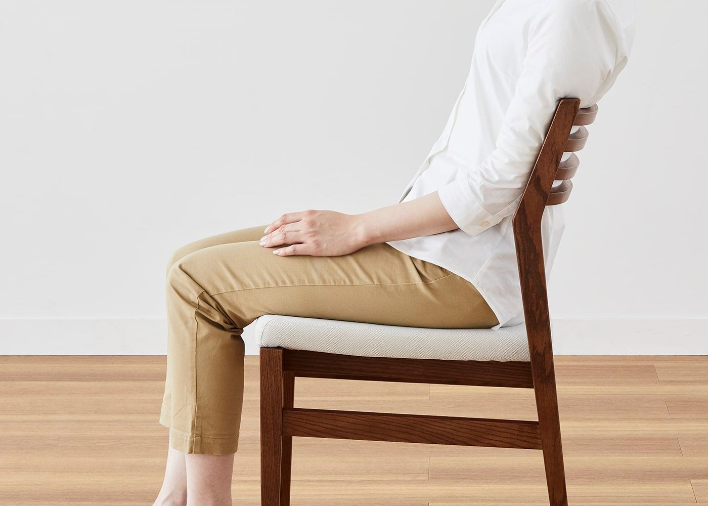 背から腰、ひざ裏にかけて、座り姿勢に沿った座面と背もたれの形を追求し、快適な座り心地を実現しました。(モデルは身長167cmの女性)