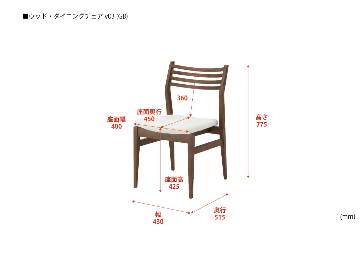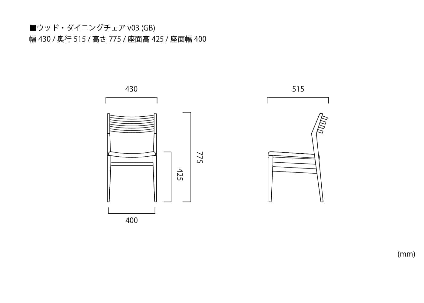 幅430 / 奥行515 / 高さ775 / 座面高425 ※単位は mm