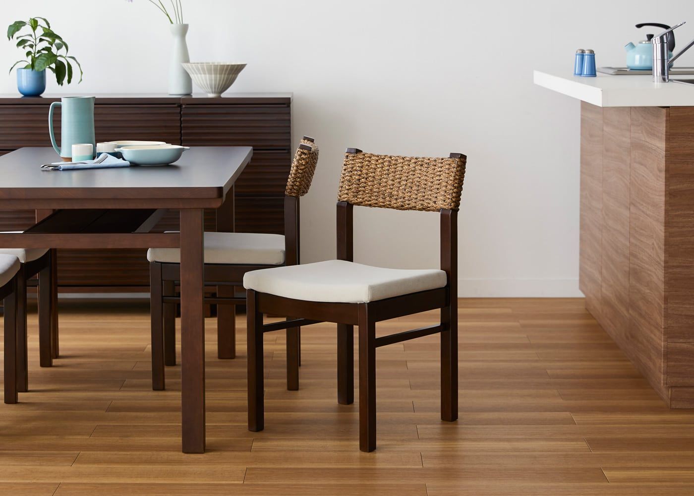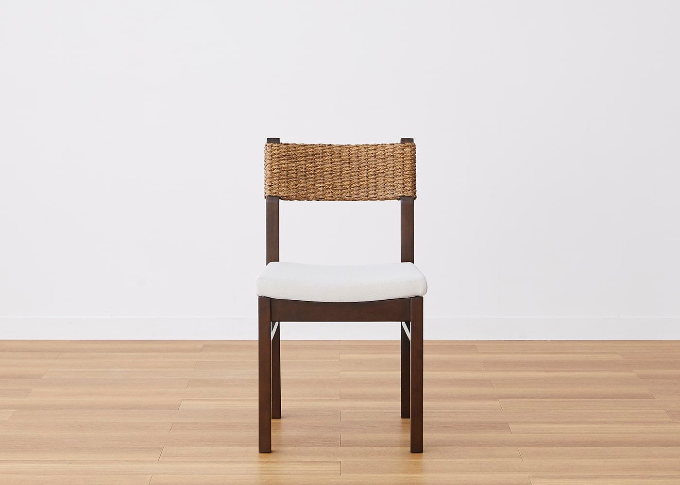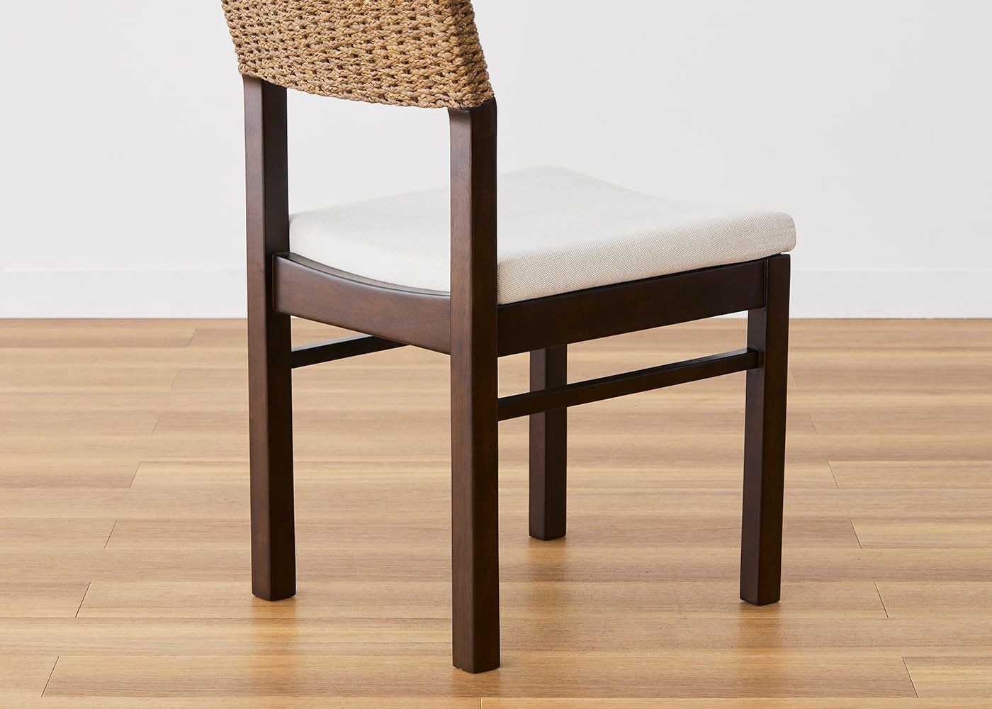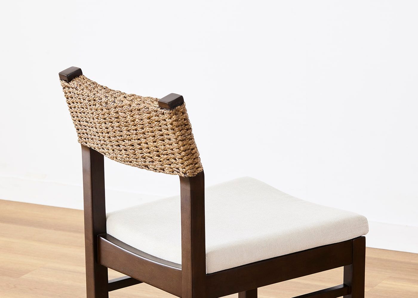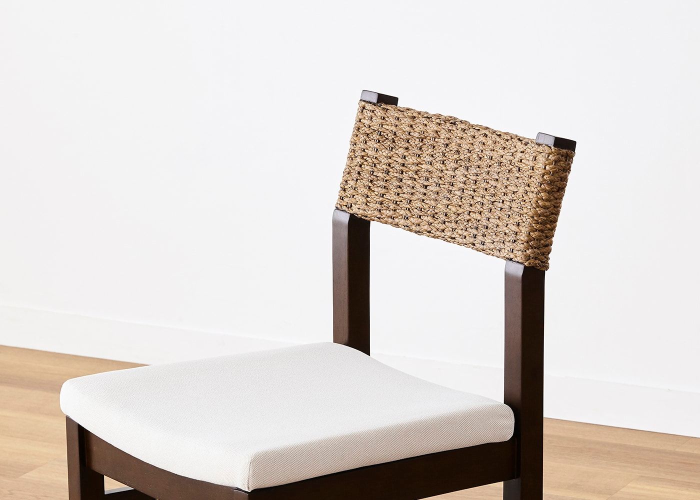 縦に伸びるウッド素材と横に広がるヒヤシンス素材のコンビネーションが目を引くカオ・ダイニングチェア (ヒヤシンス)。角材を組み上げたようなフォルムが、アジア家具らしさを感じさせます。