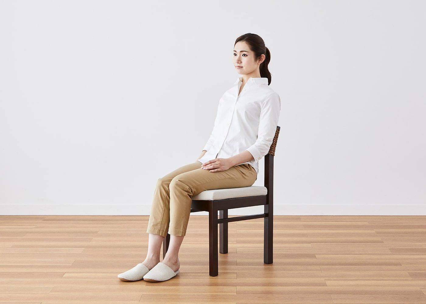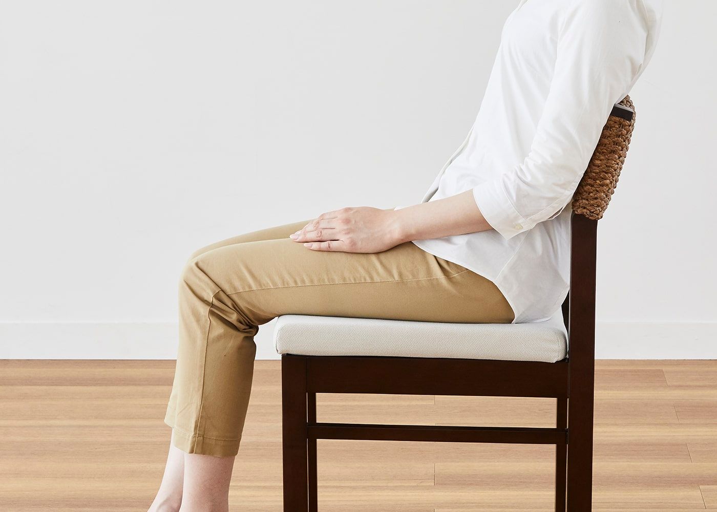背から腰、ひざ裏にかけて、座り姿勢に沿った座面と背もたれの形を追求し、快適な座り心地を実現しました。(モデルは身長167cmの女性)