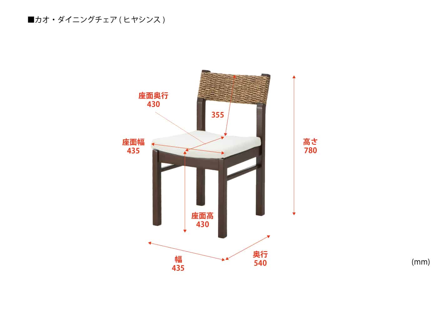 幅435 / 奥行540 / 高さ780 / 座面高430 ※単位は mm