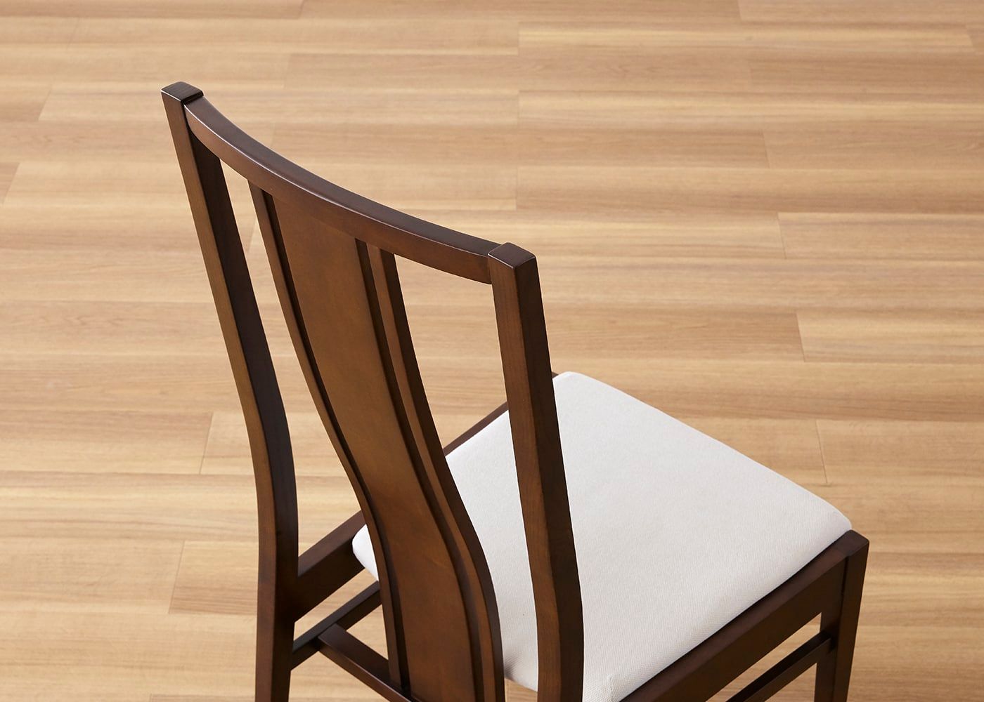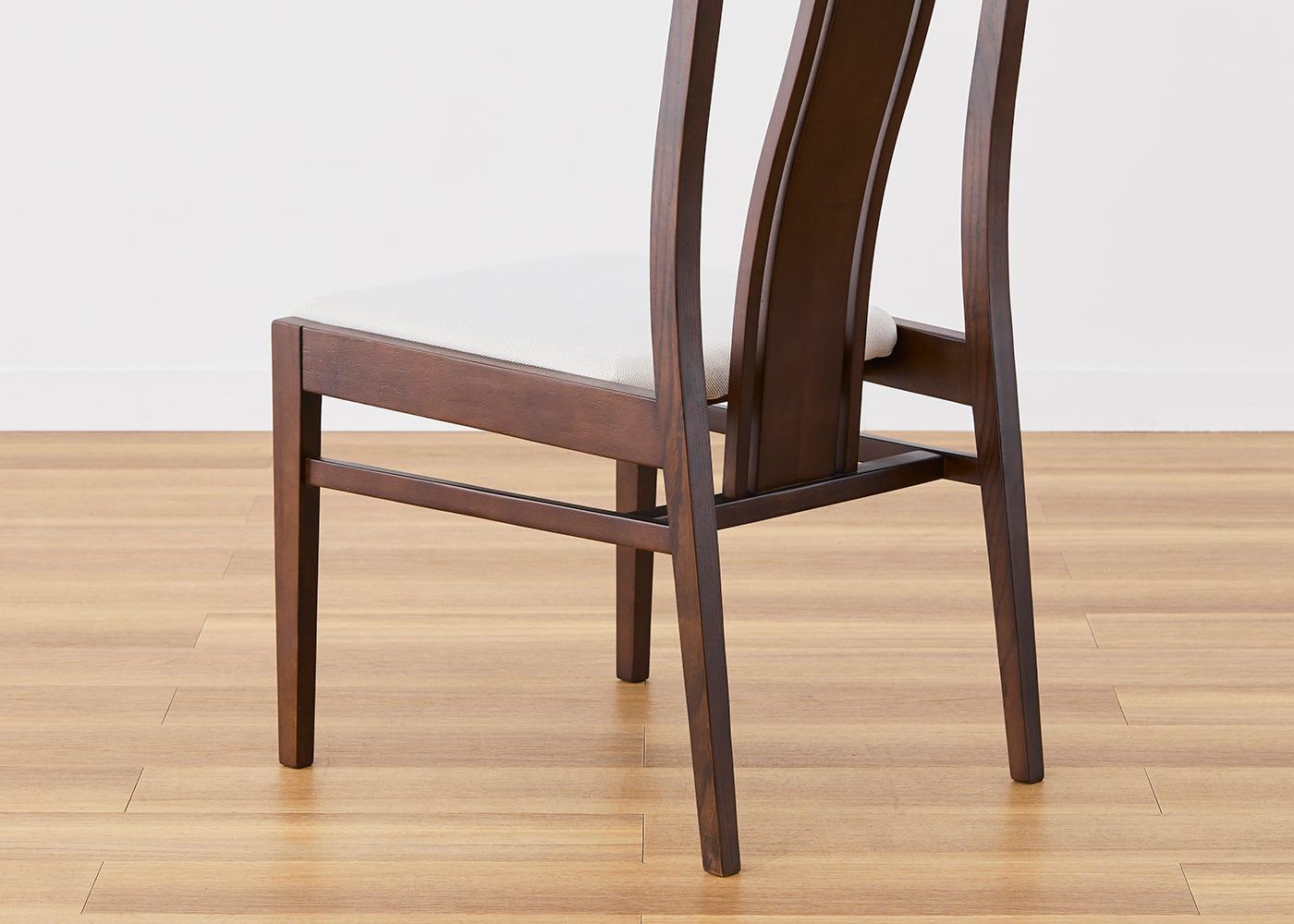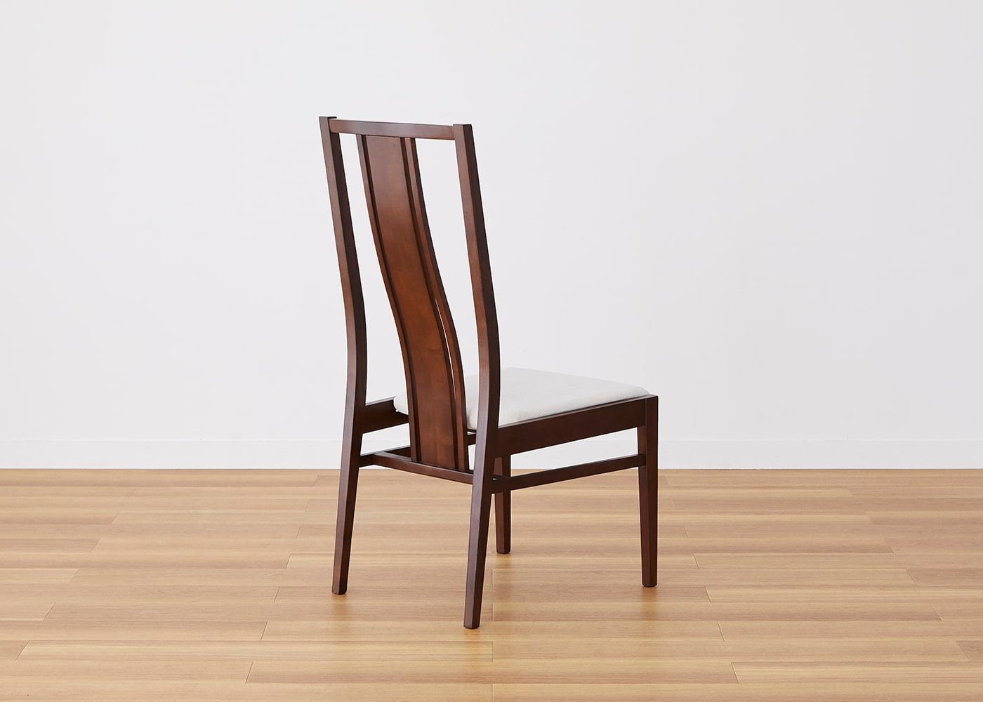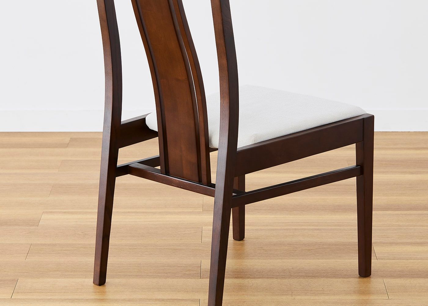 日々の暮らしでリビングからダイニングを見ることが多いため、背面のデザインにもこだわりました。座面の後側の抜け感と背もたれからつながるすらっとした後脚が脚長効果をもたらし、すっきりとした佇まいに。