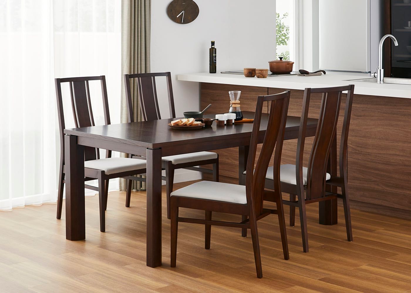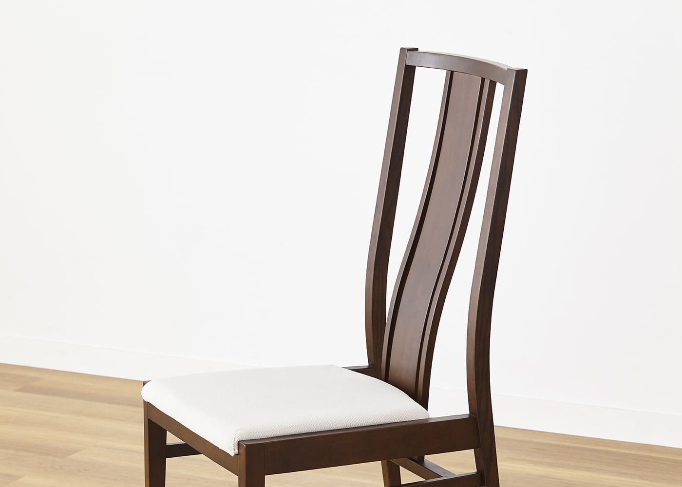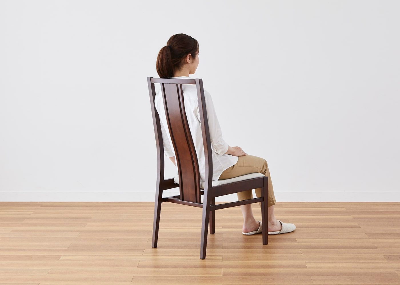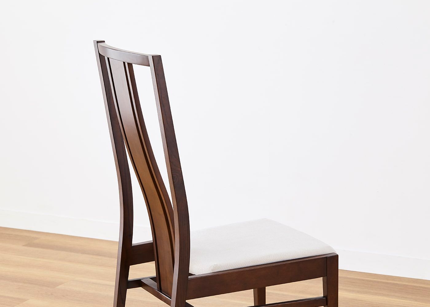日々の暮らしでリビングからダイニングを見ることが多いため、背面のデザインにもこだわりました。座面の後側の抜け感と背もたれからつながるすらっとした後脚が脚長効果をもたらし、すっきりとした佇まいに。