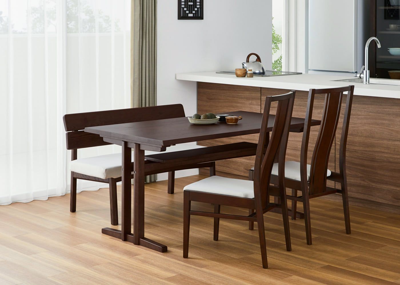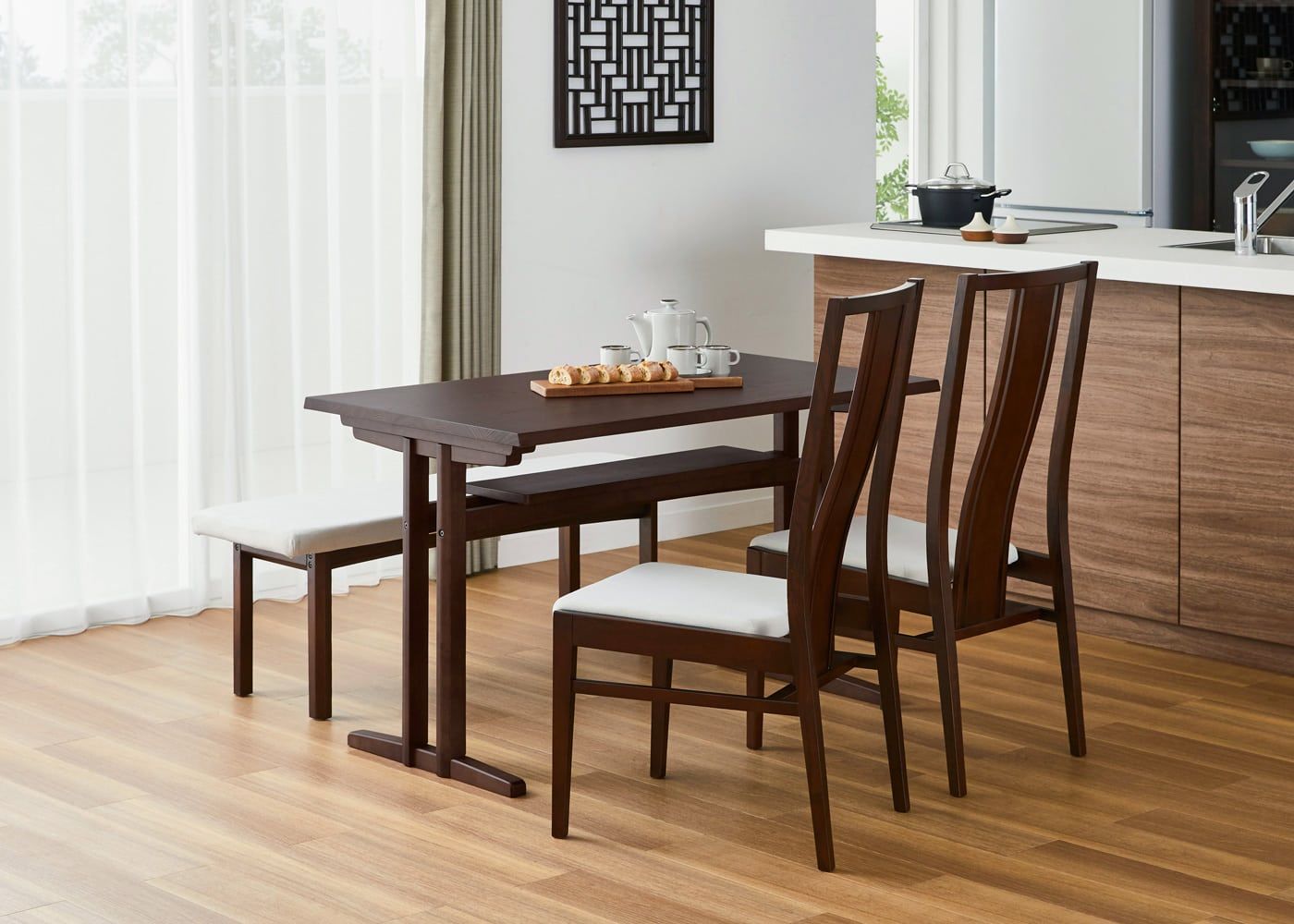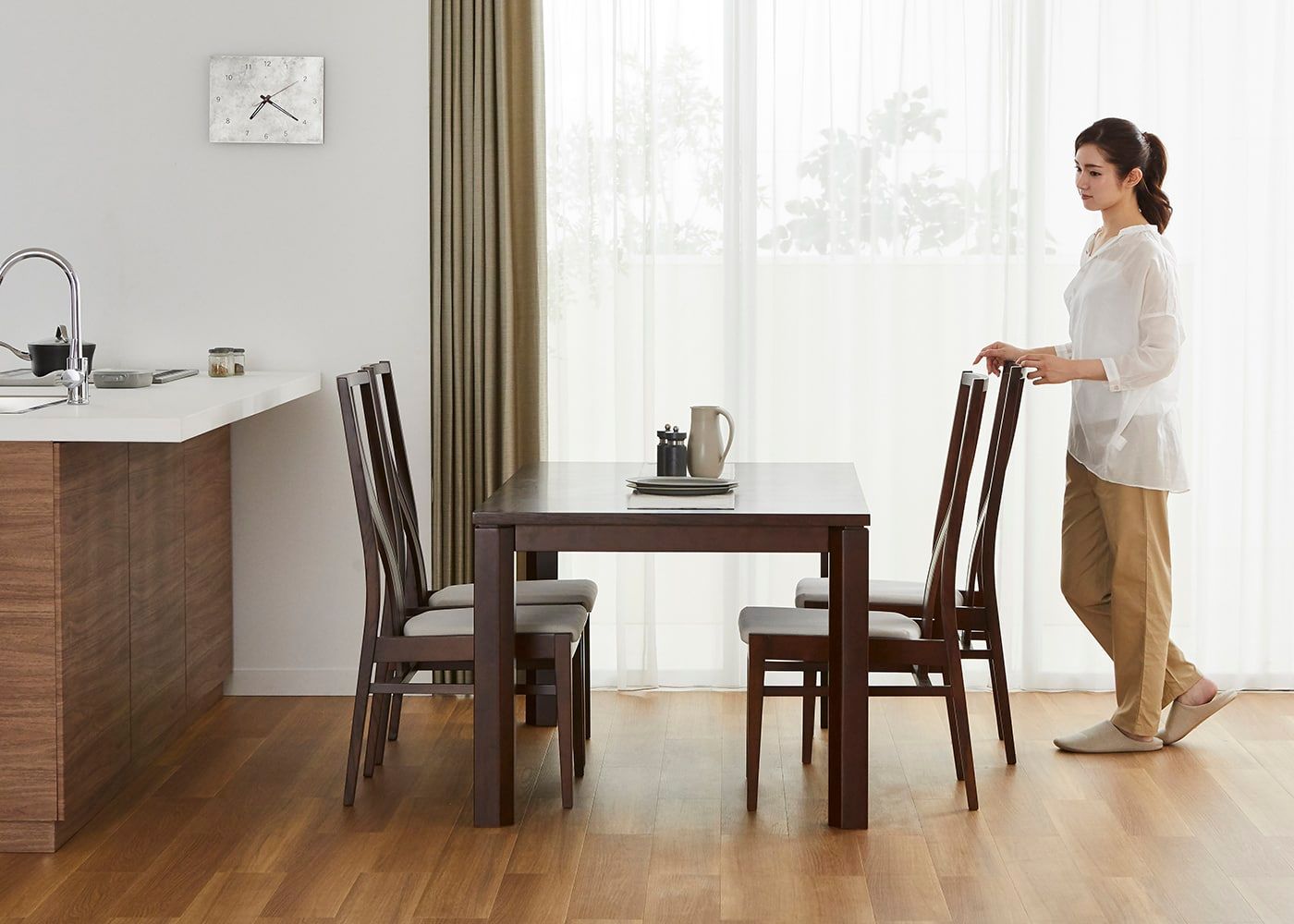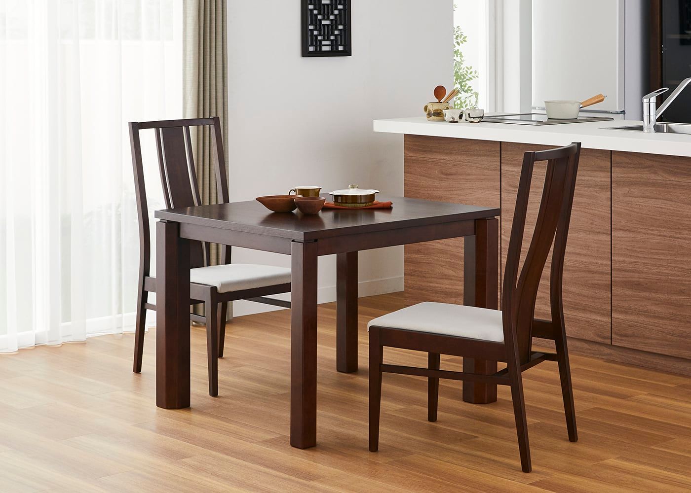 日々の暮らしでリビングからダイニングを見ることが多いため、背面のデザインにもこだわりました。座面の後側の抜け感と背もたれからつながるすらっとした後脚が脚長効果をもたらし、すっきりとした佇まいに。