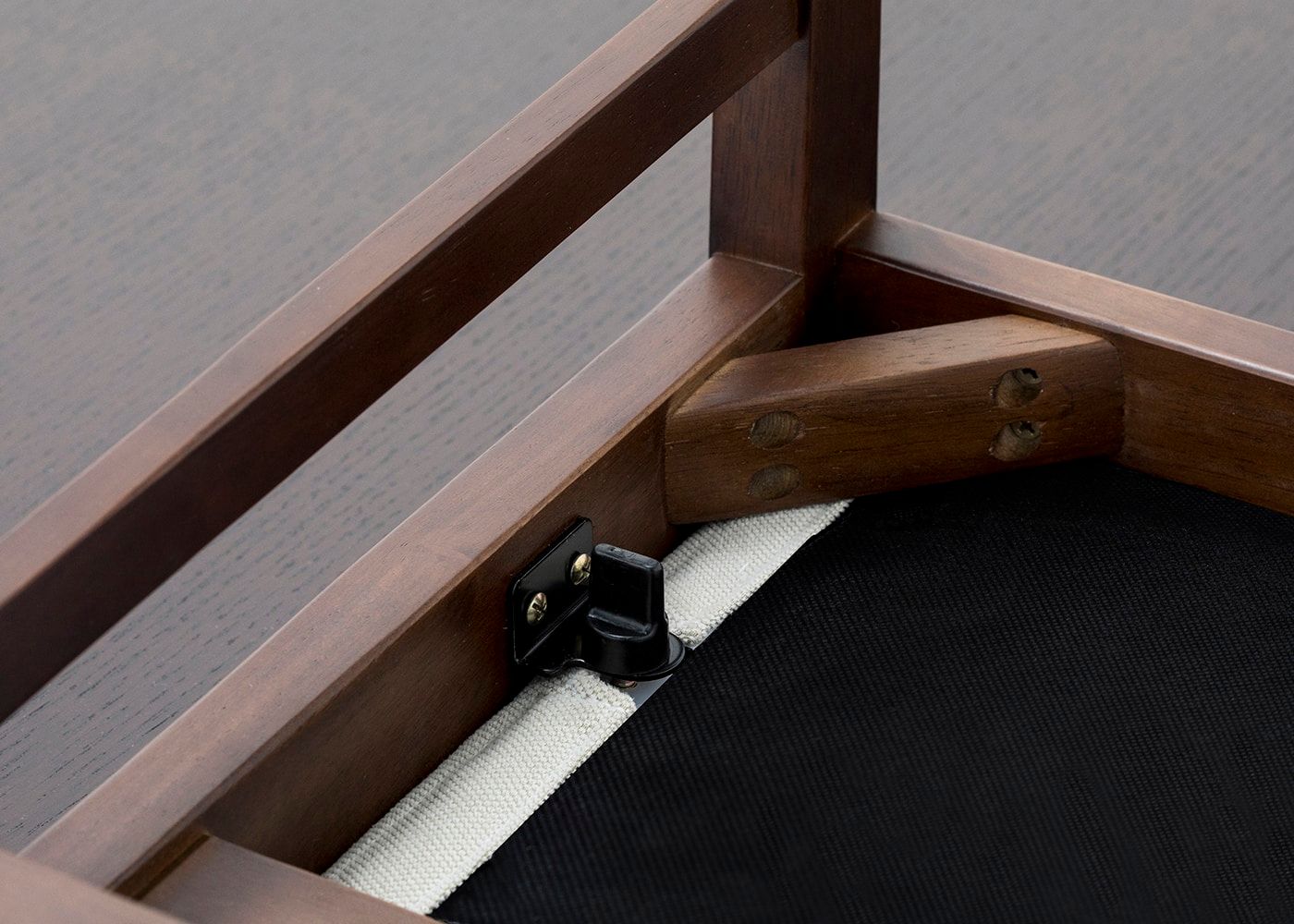 座面は本体フレームとネジで固定されたシンプルな設計です。チェアカバーを交換する時に、工具を使わずに指でネジを回すだけで簡単に座面を外すことができるのがa.flatチェアの特長です。