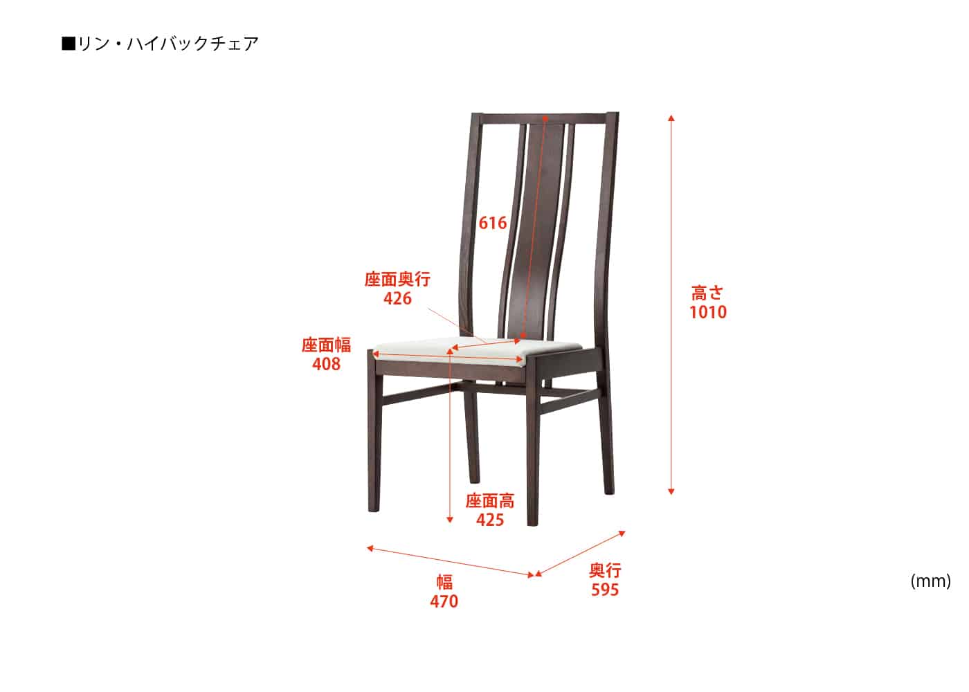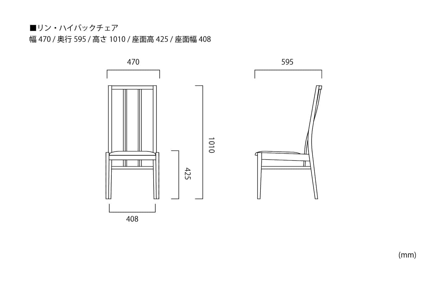 幅470 / 奥行595 / 高さ1010 / 座面高425 ※単位は mm