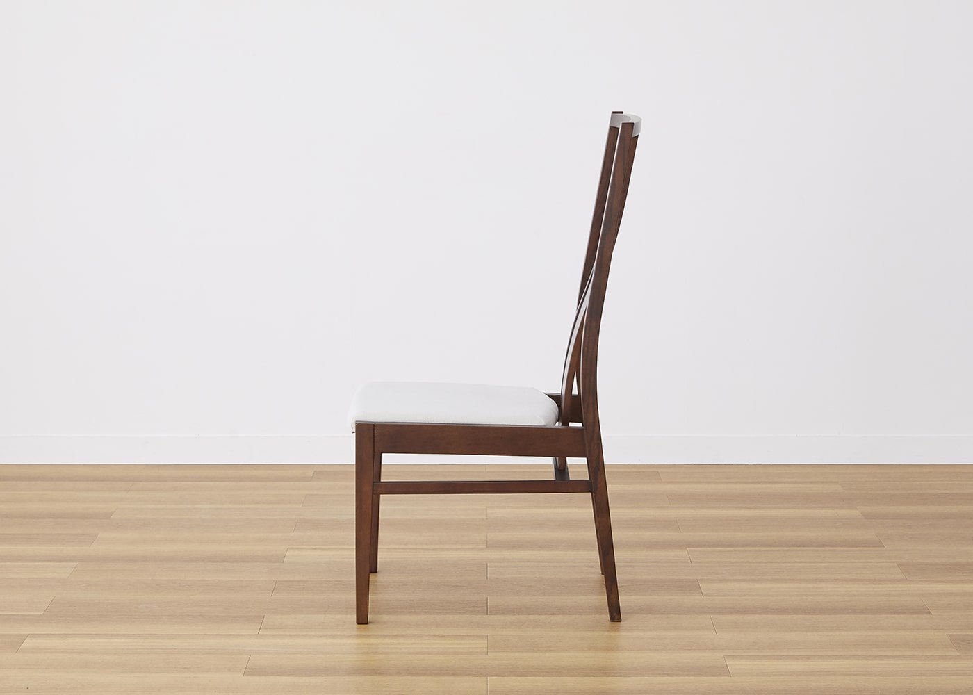 座面下の貫まで続く背もたれが、抜け感をもたらす美しい構造を引き立てます。