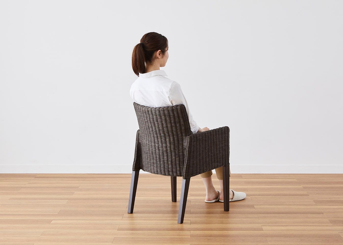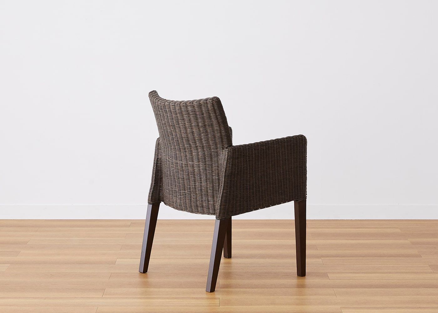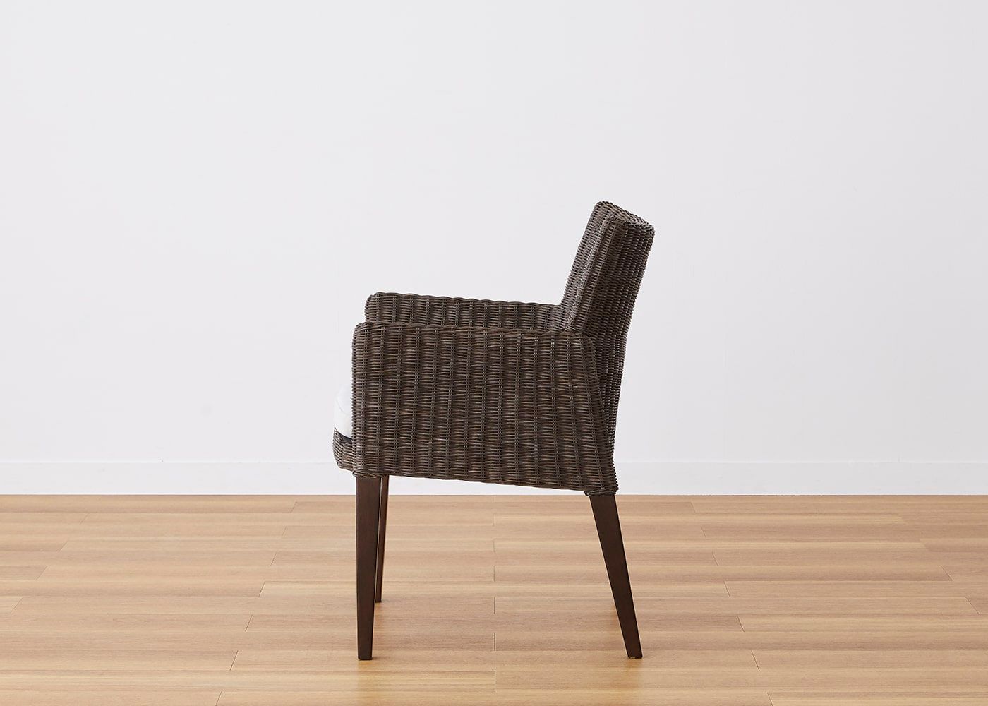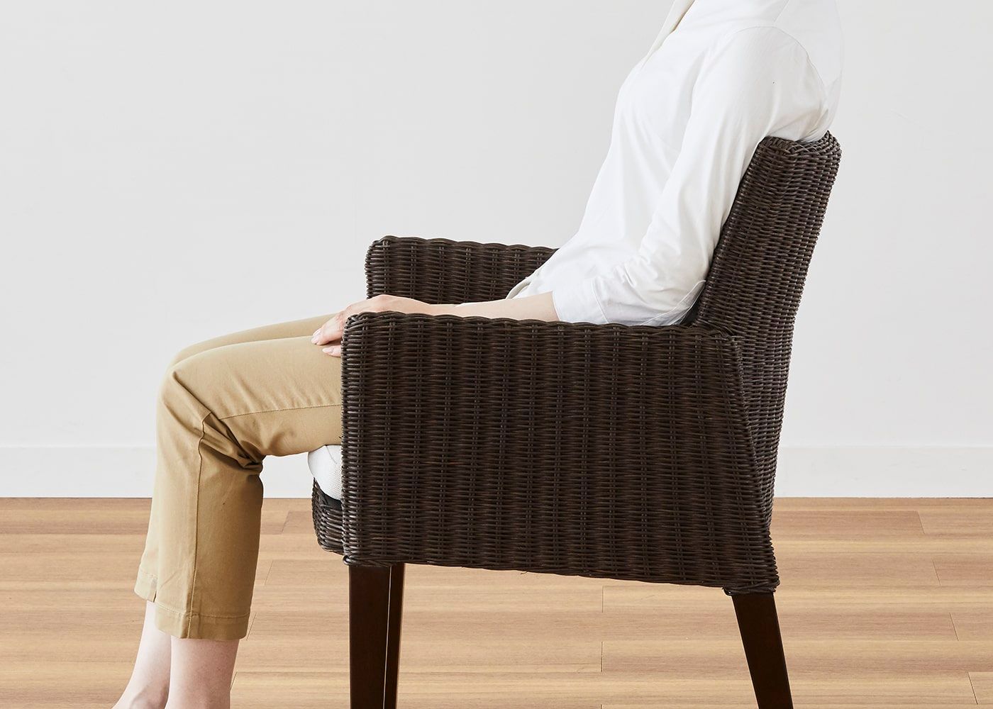 アーム全体にラタン素材が編み込まれているため、アームの角や上面にも適度に丸みが生まれます。腕や手へのあたりがやさしいアームチェアです。