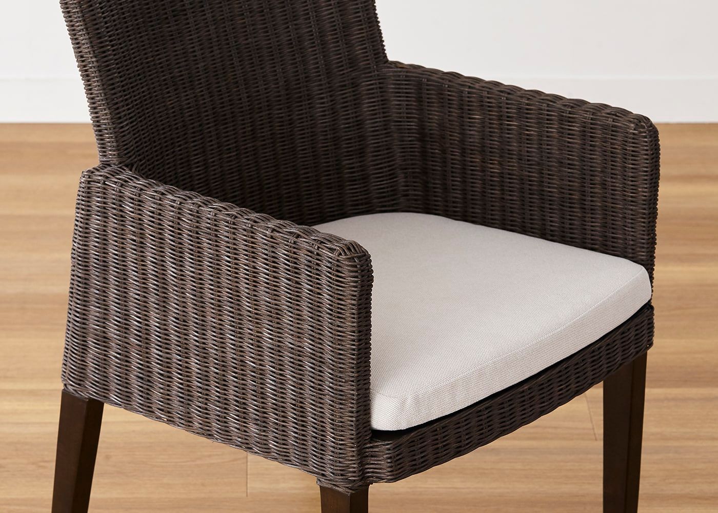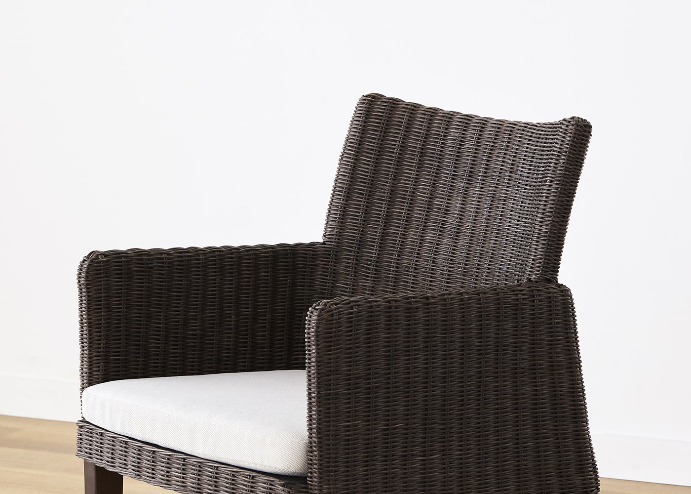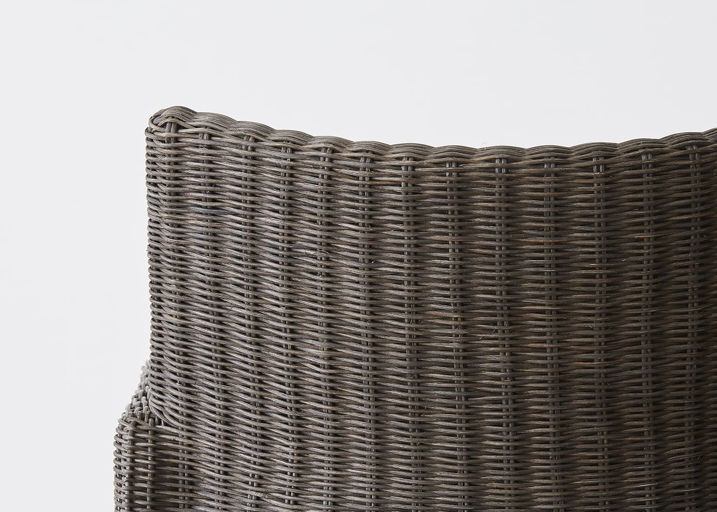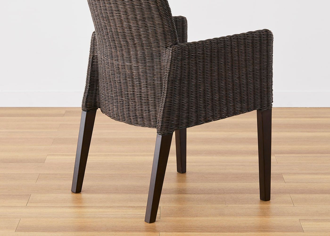 アーム全体にラタン素材が編み込まれているため、アームの角や上面にも適度に丸みが生まれます。腕や手へのあたりがやさしいアームチェアです。