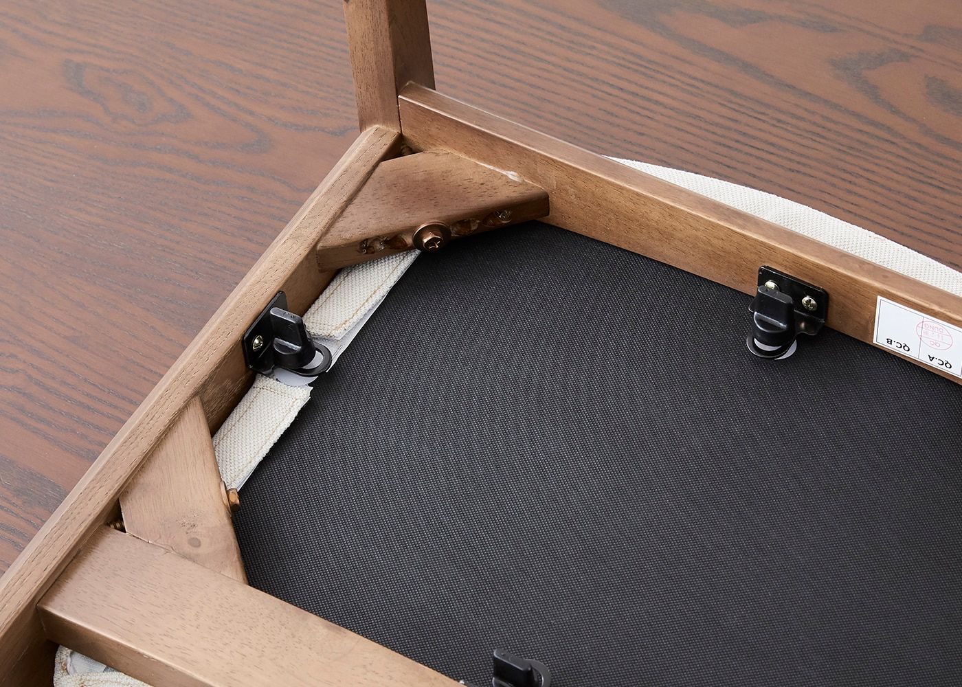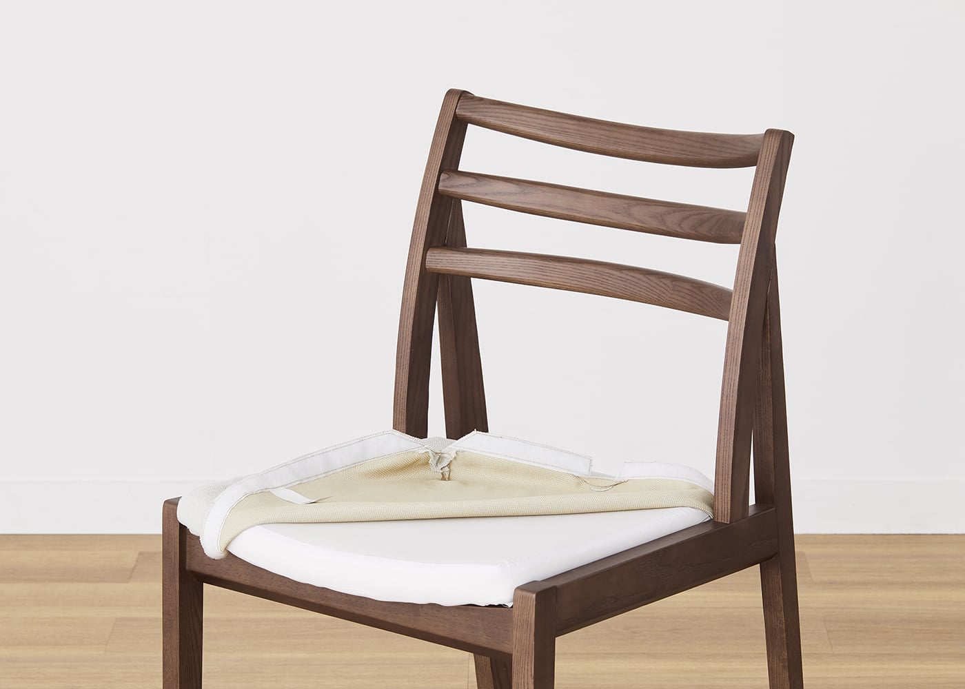 座面は本体フレームとネジで固定されたシンプルな設計です。チェアカバーを交換する時に、工具を使わずに指でネジを回すだけで簡単に座面を外すことができるのがa.flatチェアの特長です。