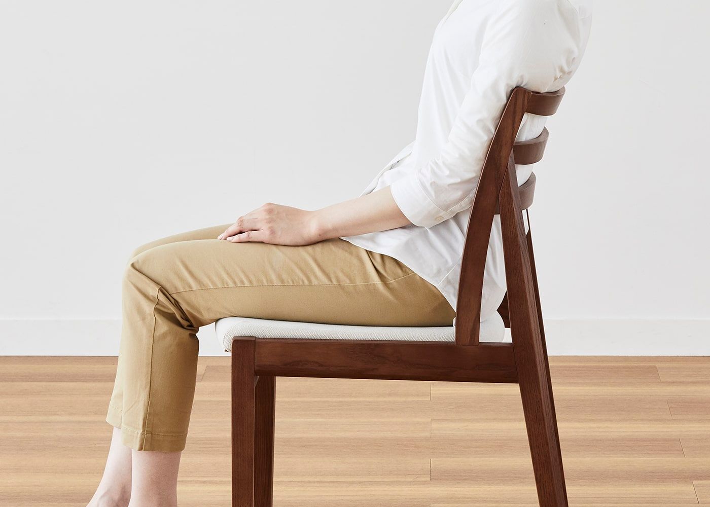 背から腰、ひざ裏にかけて、座り姿勢に沿った座面と背もたれの形を追求し、快適な座り心地を実現しました。(モデルは身長167cmの女性)
