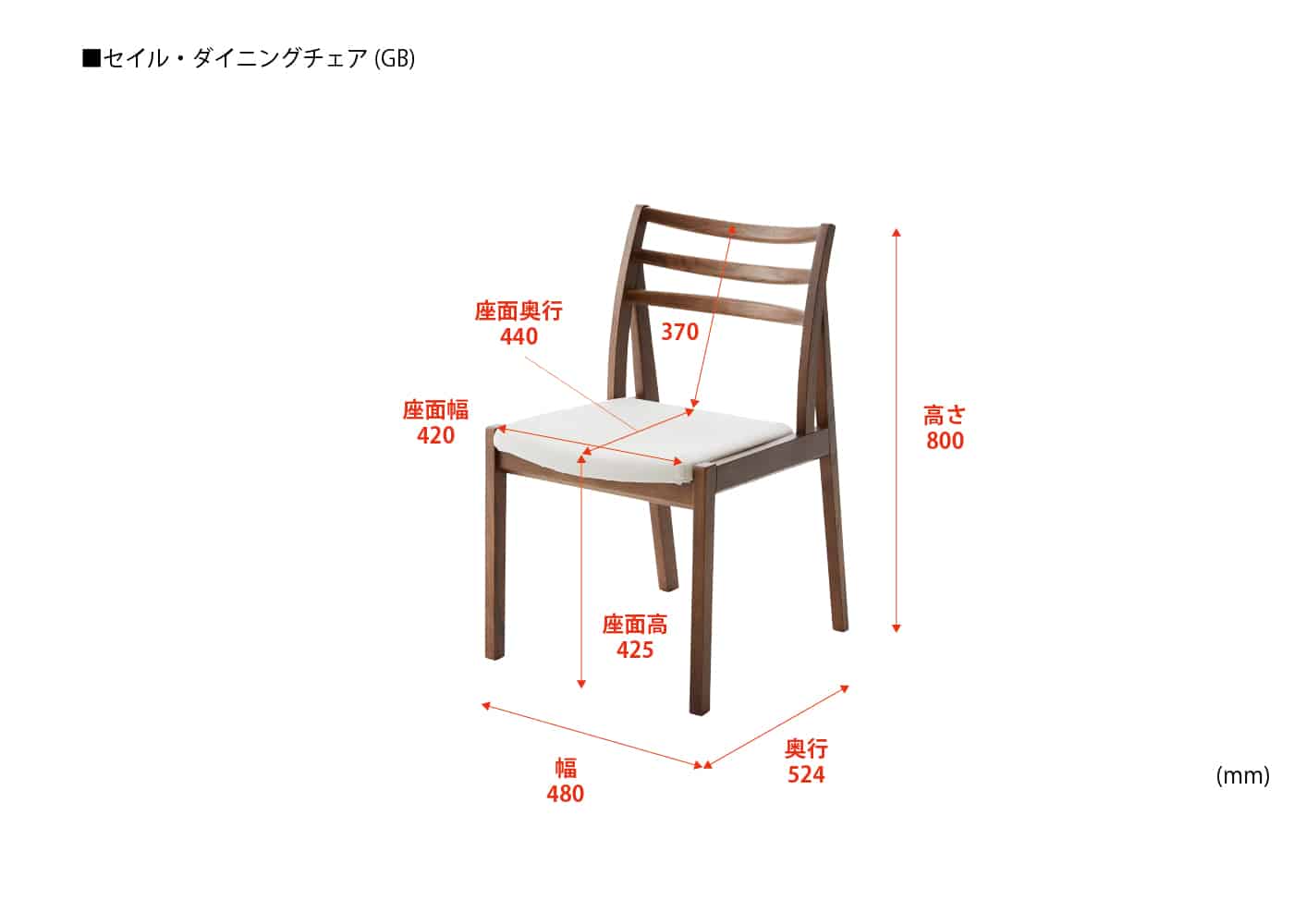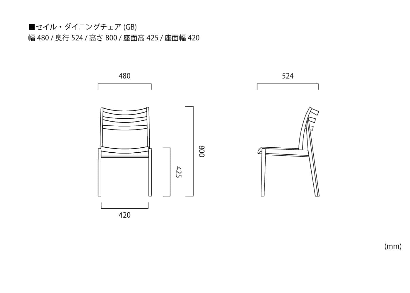 幅480 / 奥行524 / 高さ800 / 座面高425 ※単位は mm