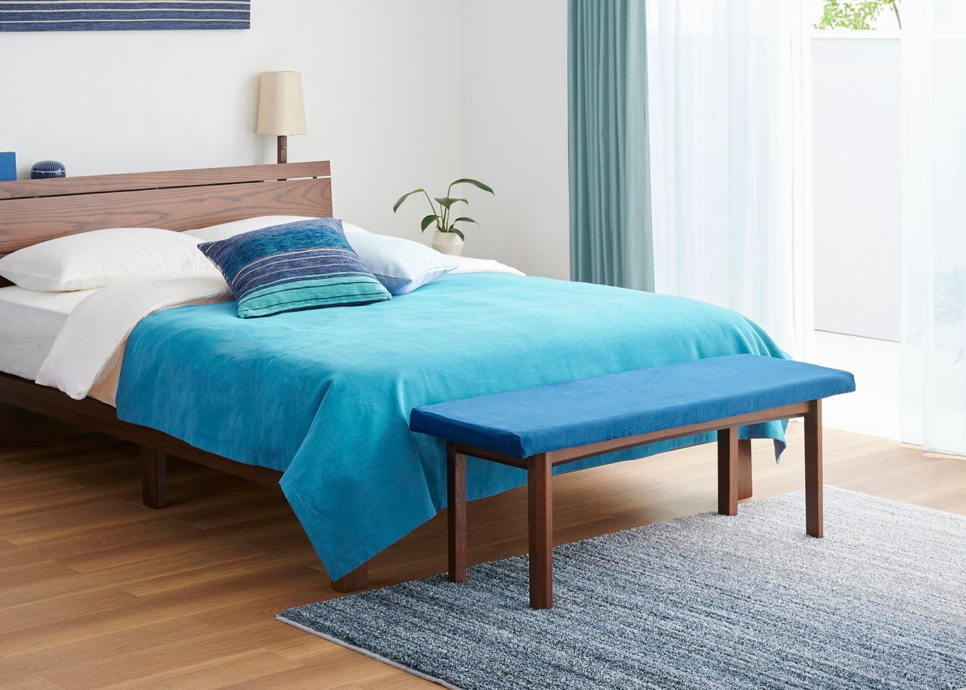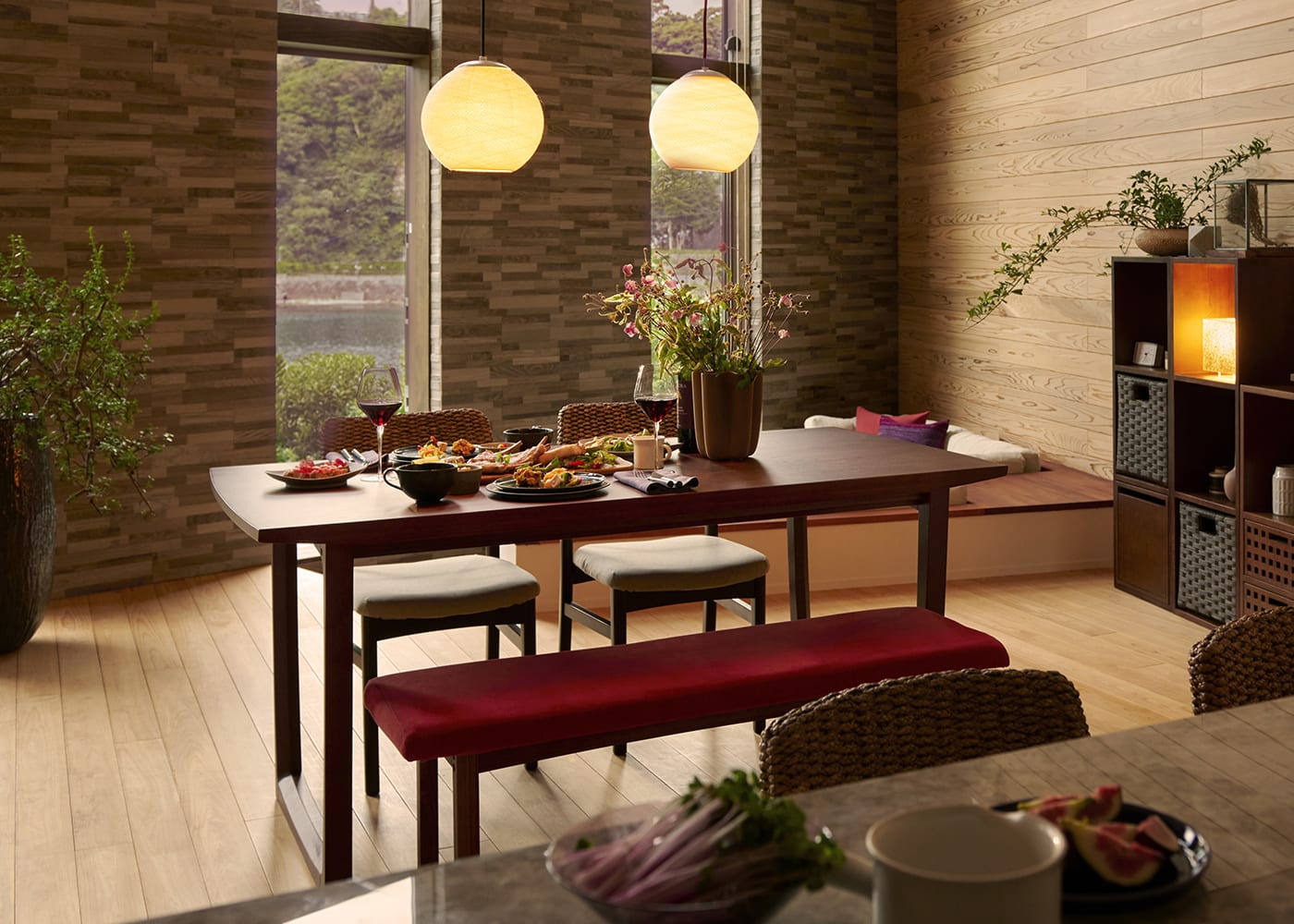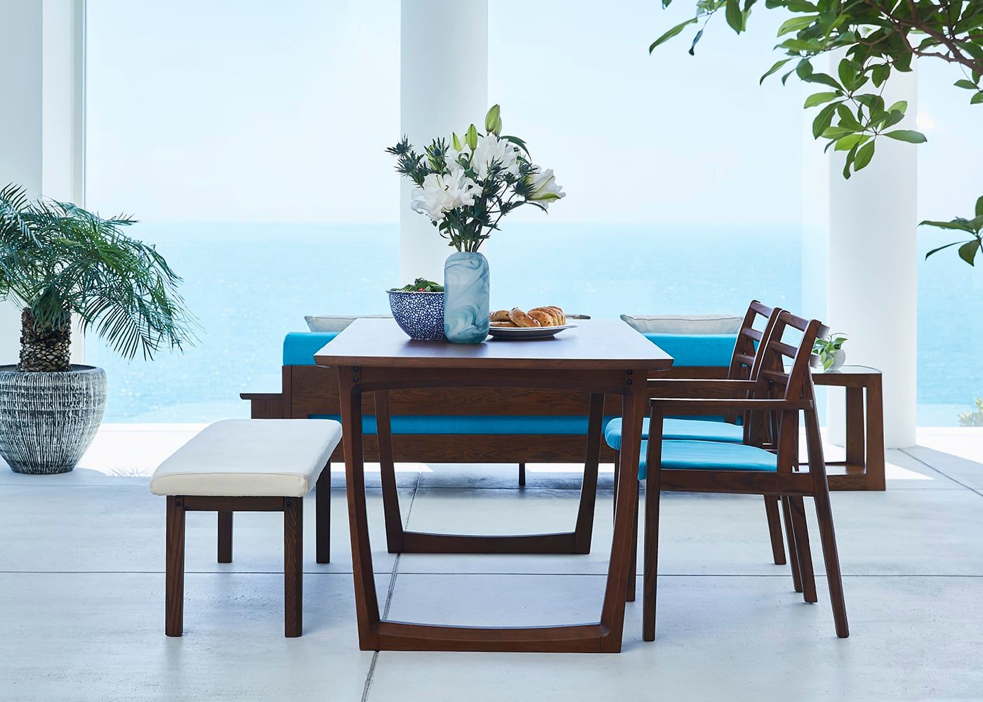 a.flatのダイニングベンチはカバーの着せ替えができるのが魅力。約100色のファブリックから素材や色を選んで、あなただけのカラーコーディネートをお楽しみください。(別売、受注生産)