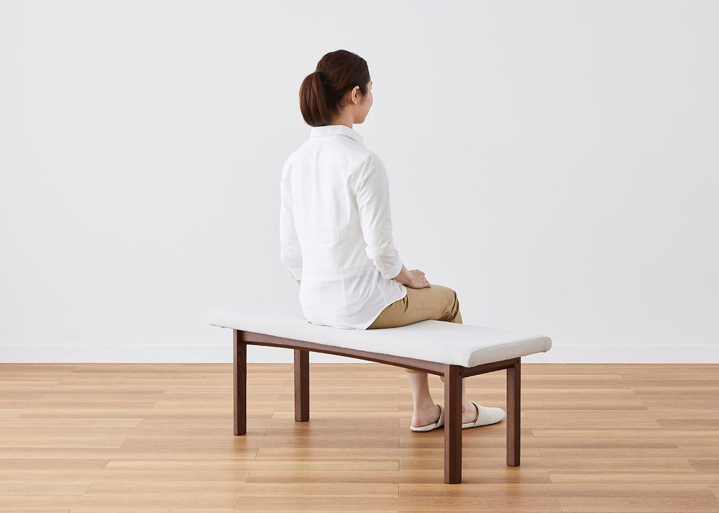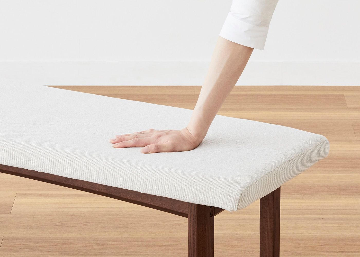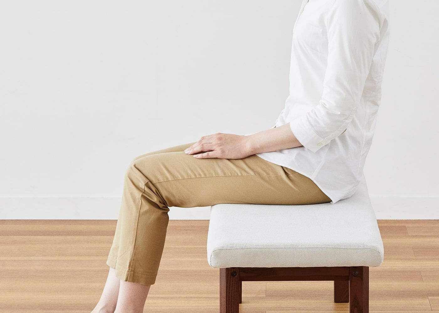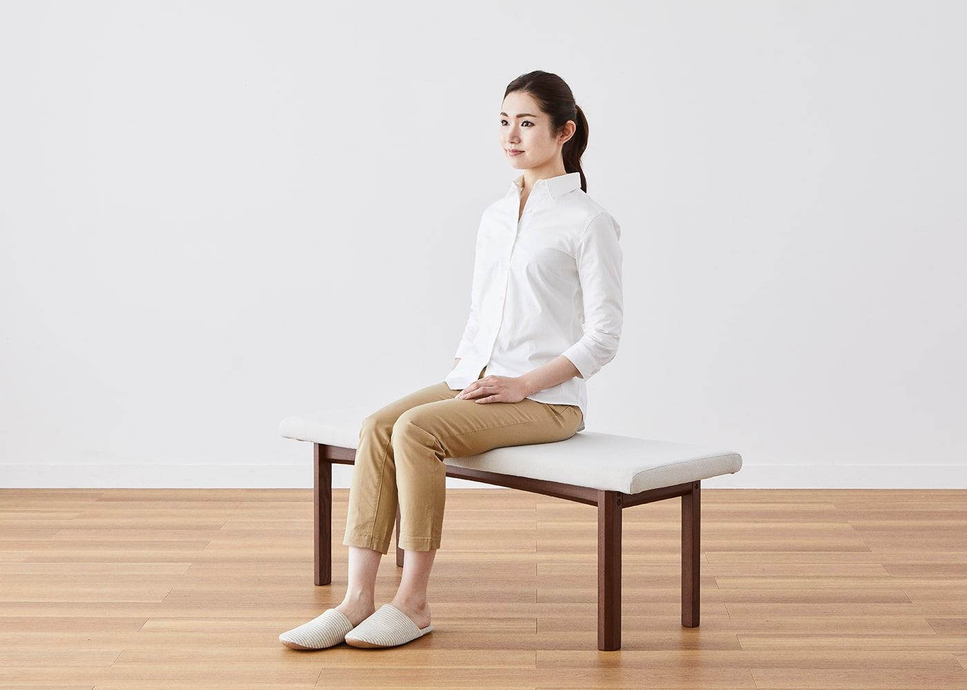 背もたれがないため、どの方向からでも立ち座りすることができるのが魅力。座面は安定感のある適度な硬さに設定しています。