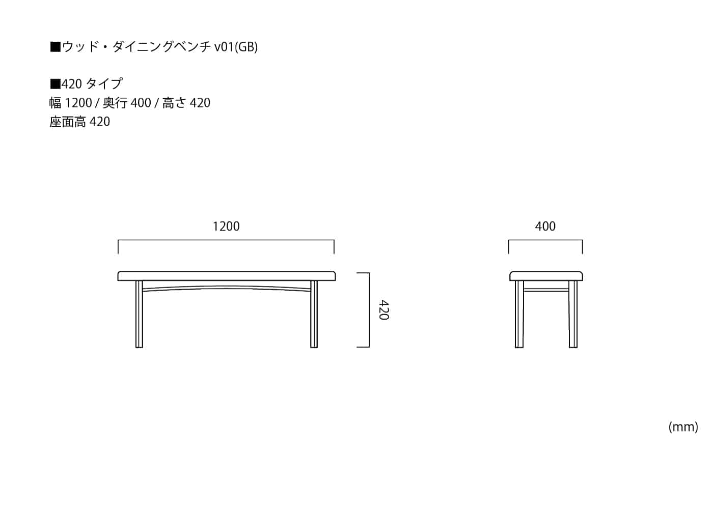 幅1200 / 奥行400 / 高さ420 /