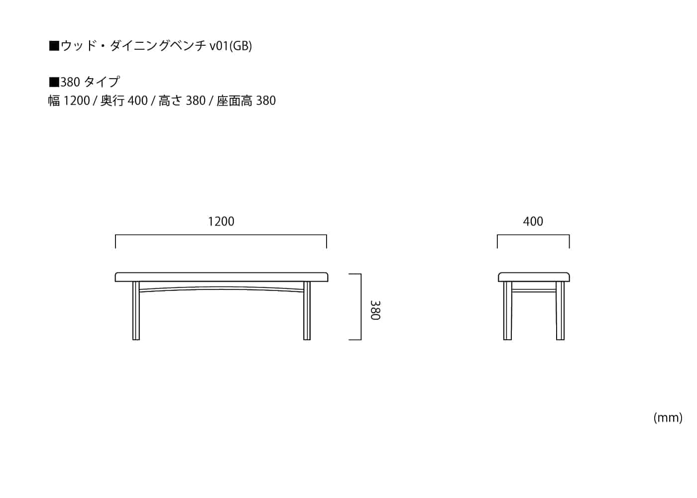 幅1200 / 奥行400 / 高さ380 /