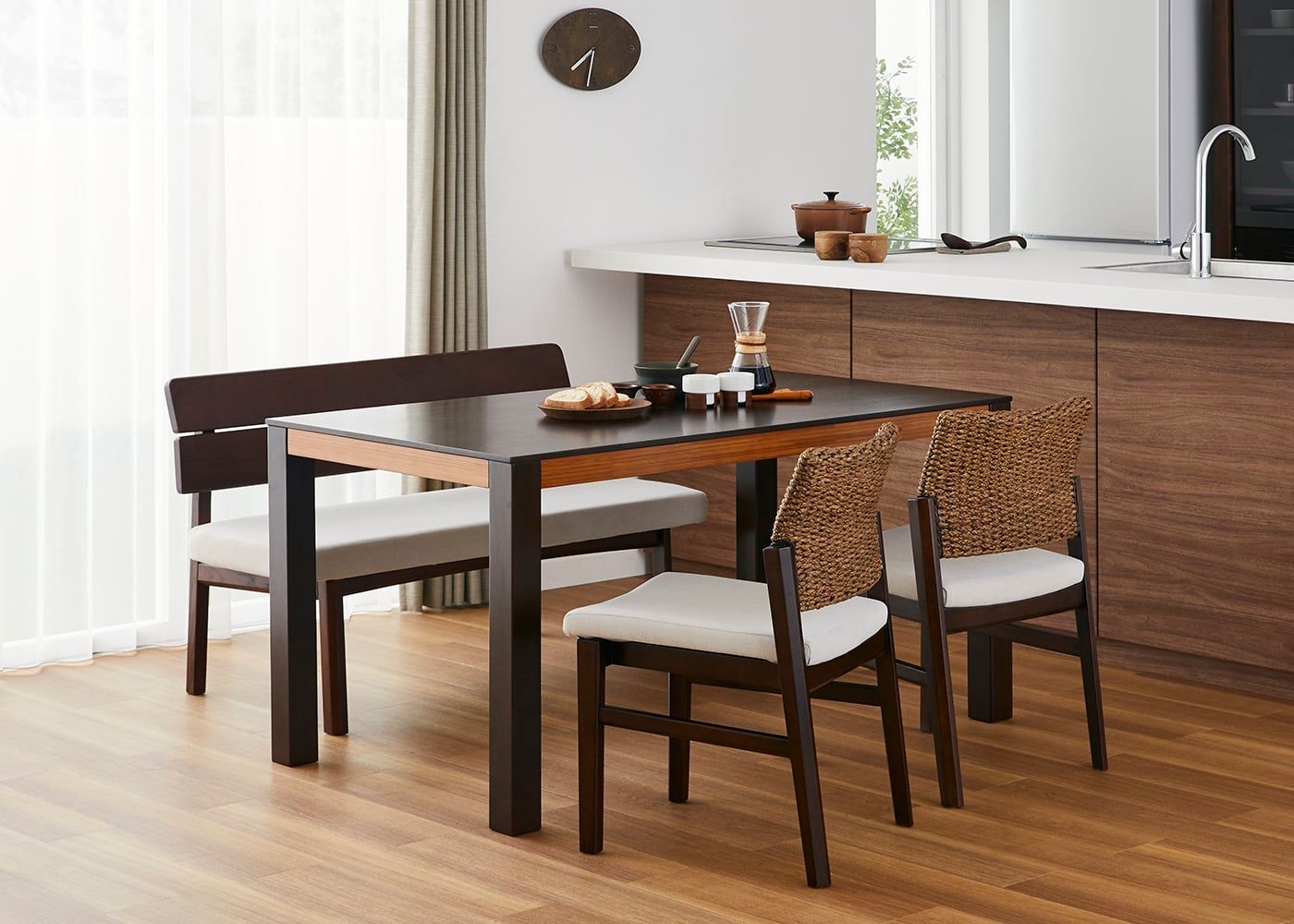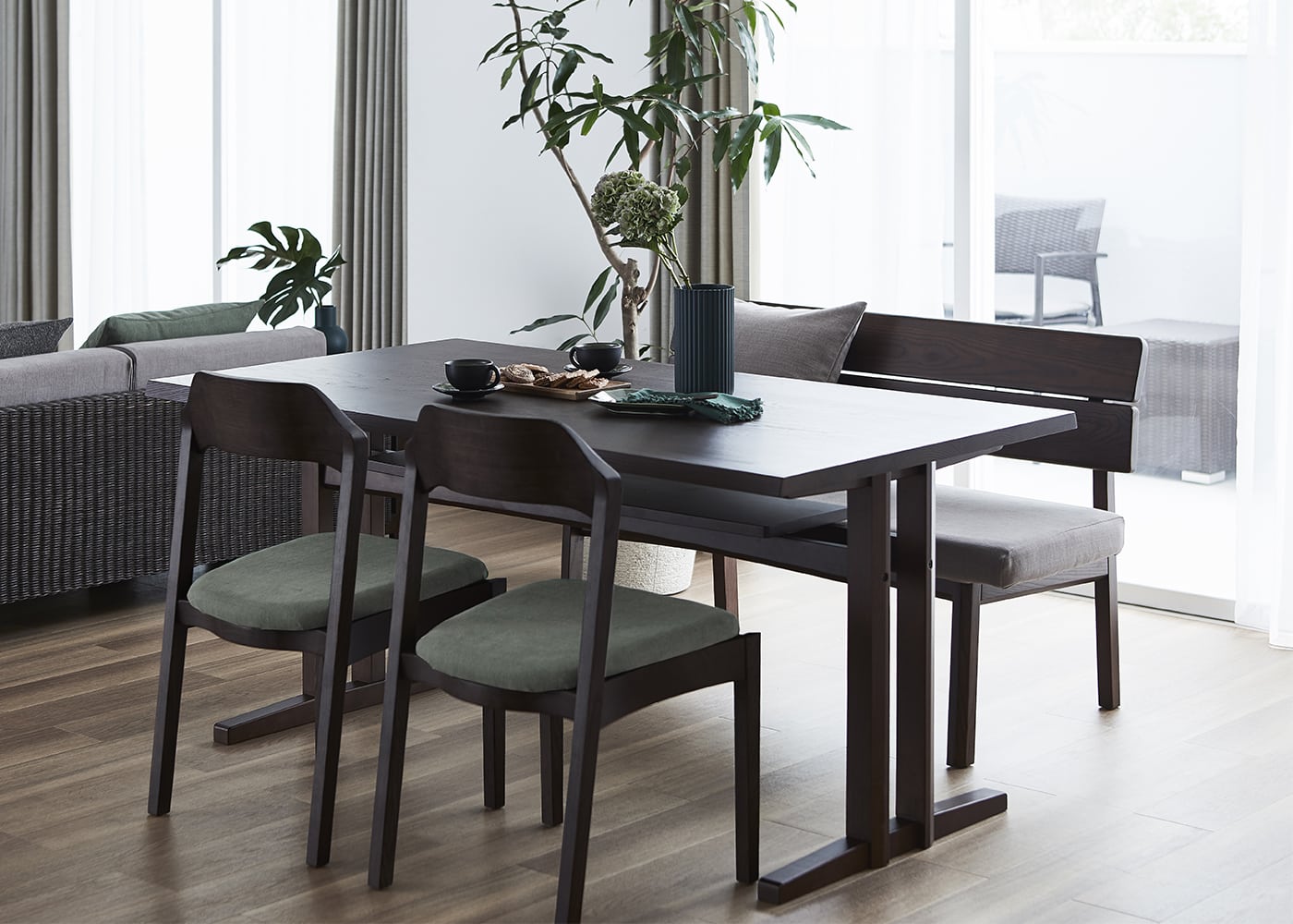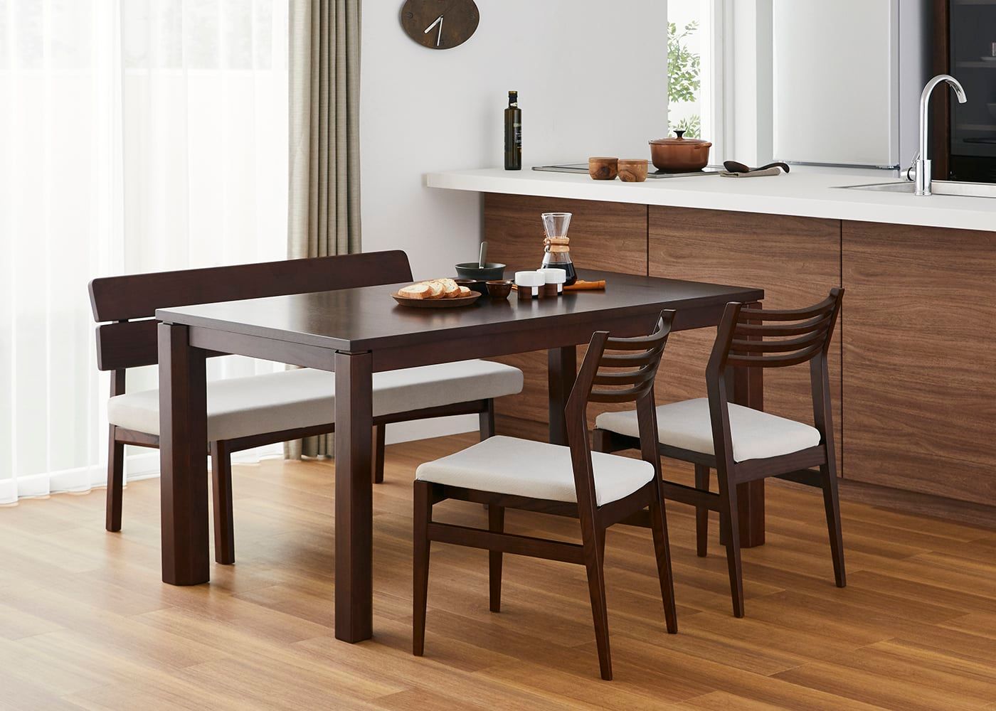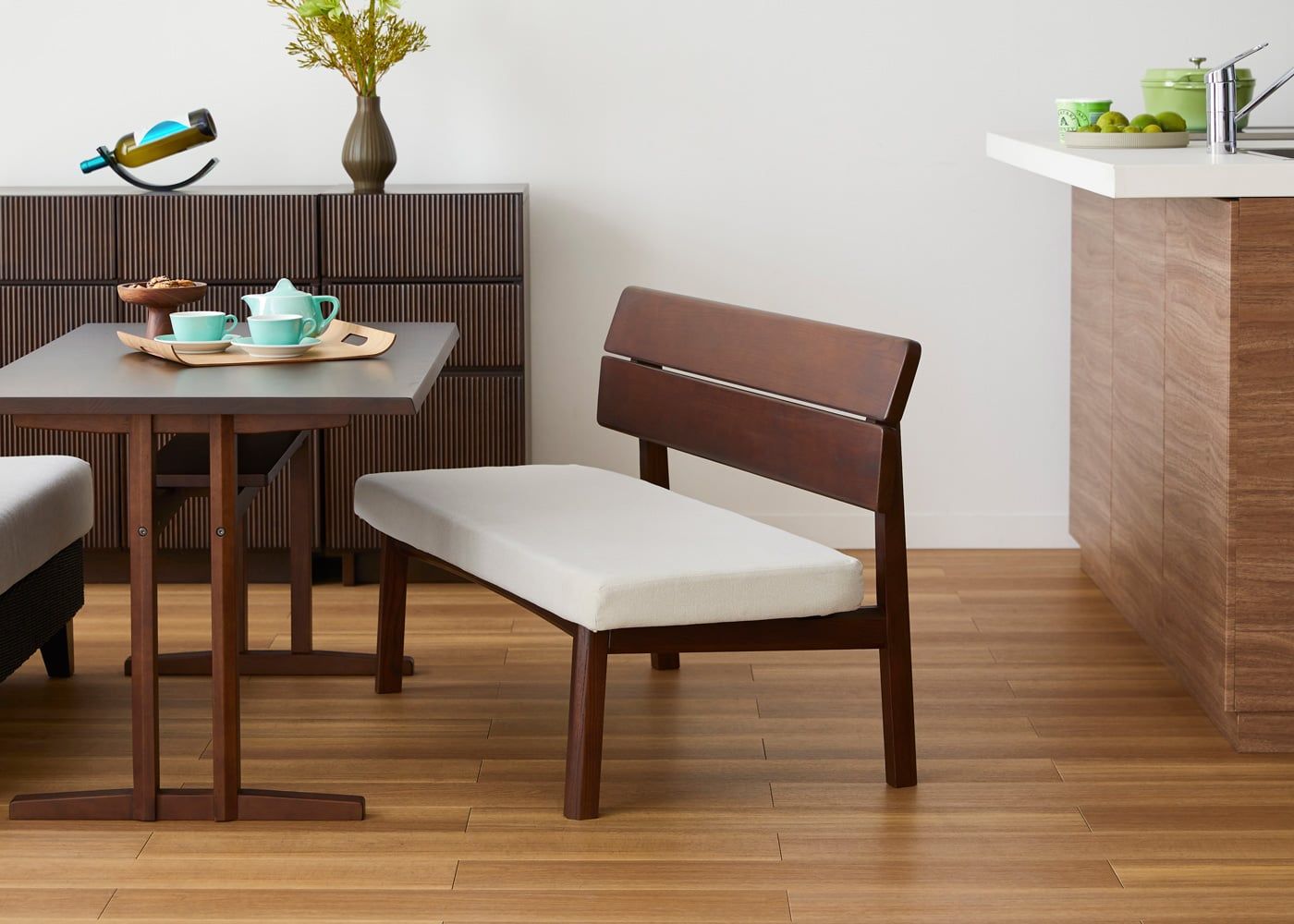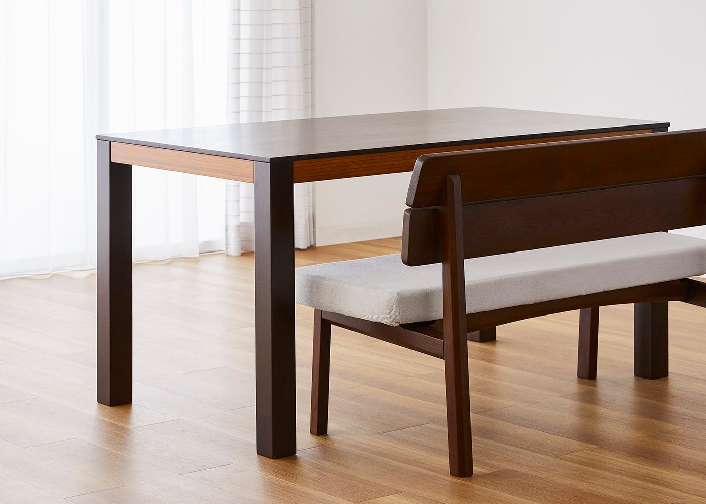 a.flatのダイニングベンチはカバーの着せ替えができるのが魅力。約100色のファブリックから素材や色を選んで、あなただけのカラーコーディネートをお楽しみください。(別売、受注生産)