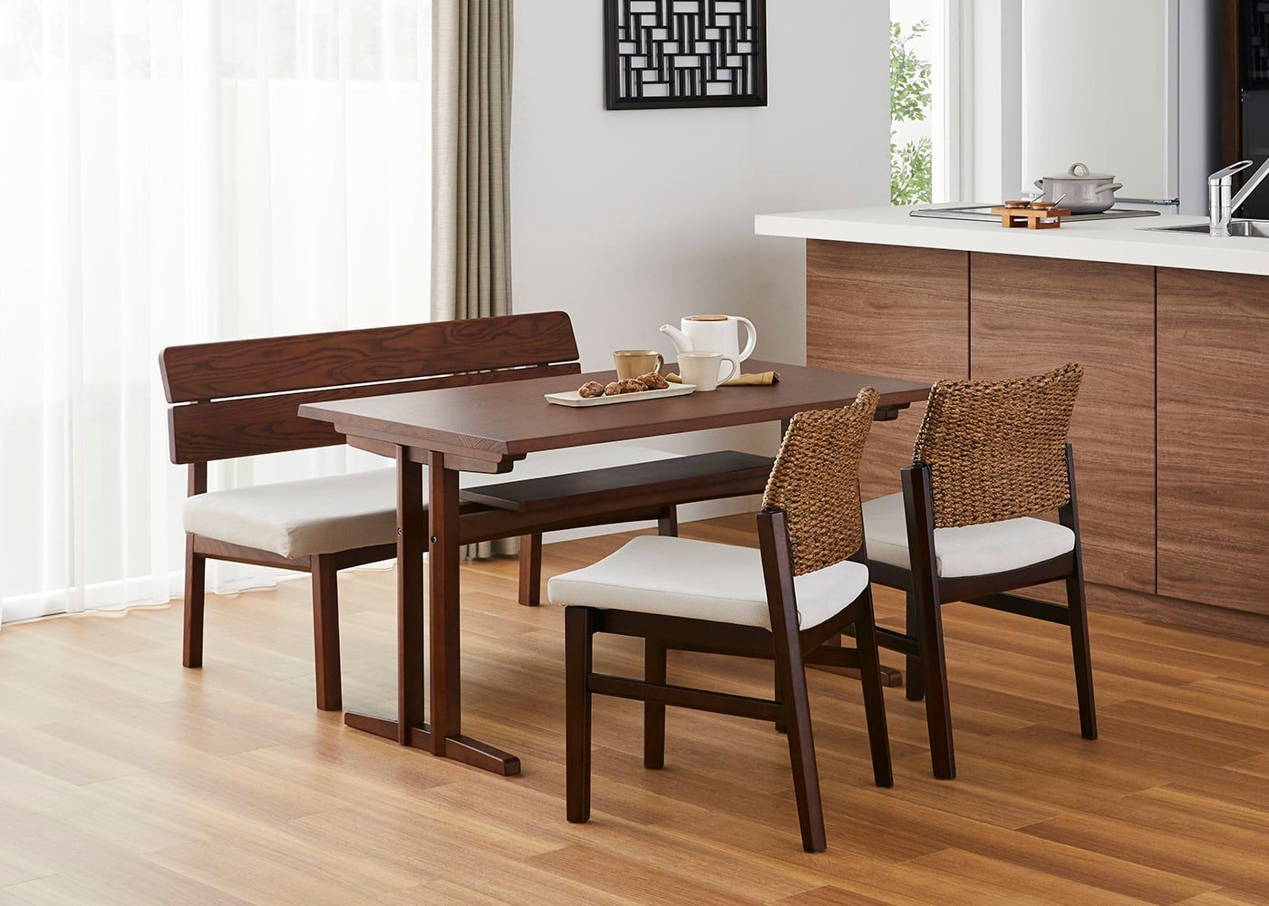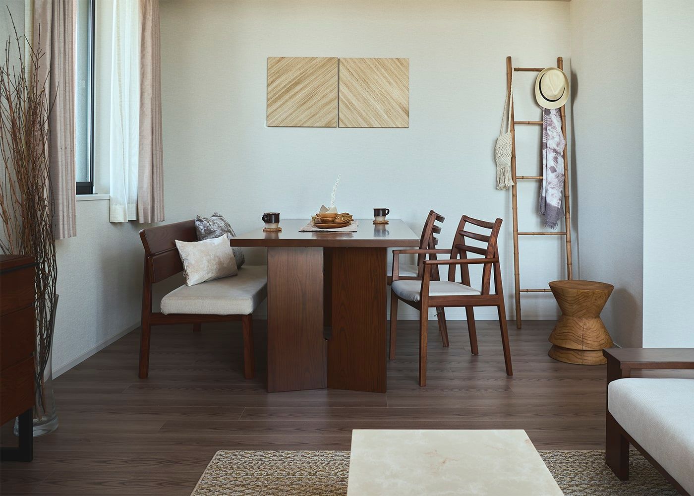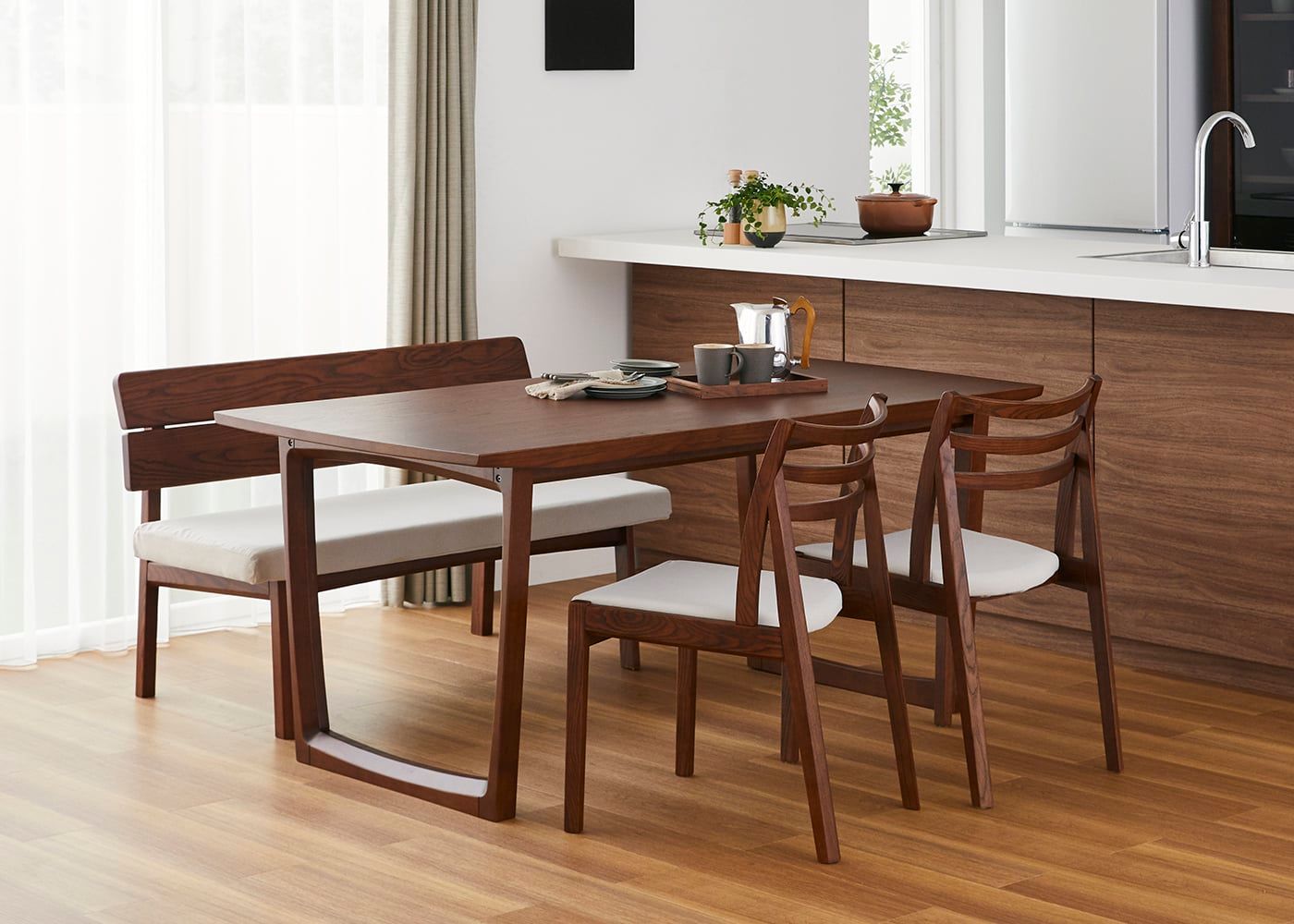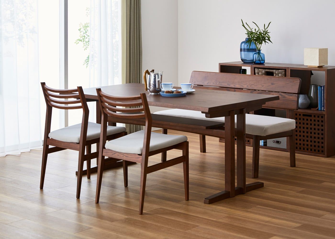 a.flatのダイニングベンチはカバーの着せ替えができるのが魅力。約100色のファブリックから素材や色を選んで、あなただけのカラーコーディネートをお楽しみください。(別売、受注生産)