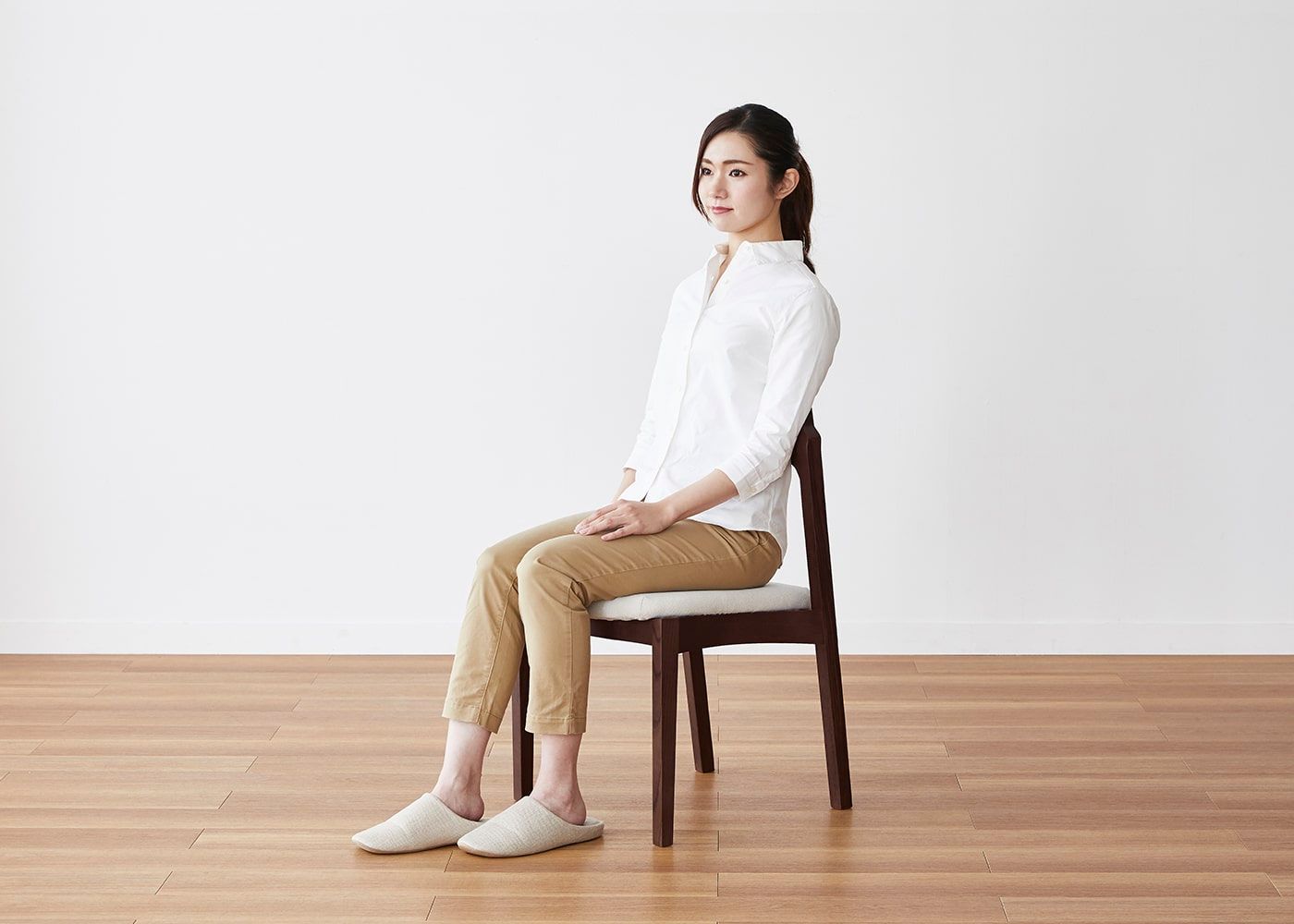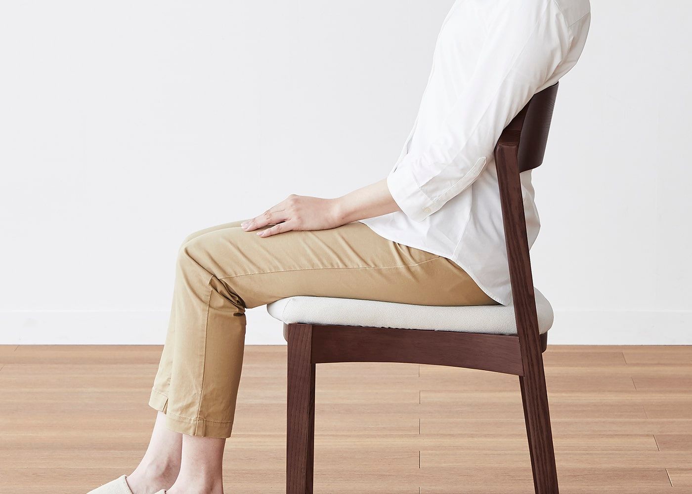 背から腰、ひざ裏にかけて、座り姿勢に沿った座面と背もたれの形を追求し、快適な座り心地を実現しました。(モデルは身長167cmの女性)