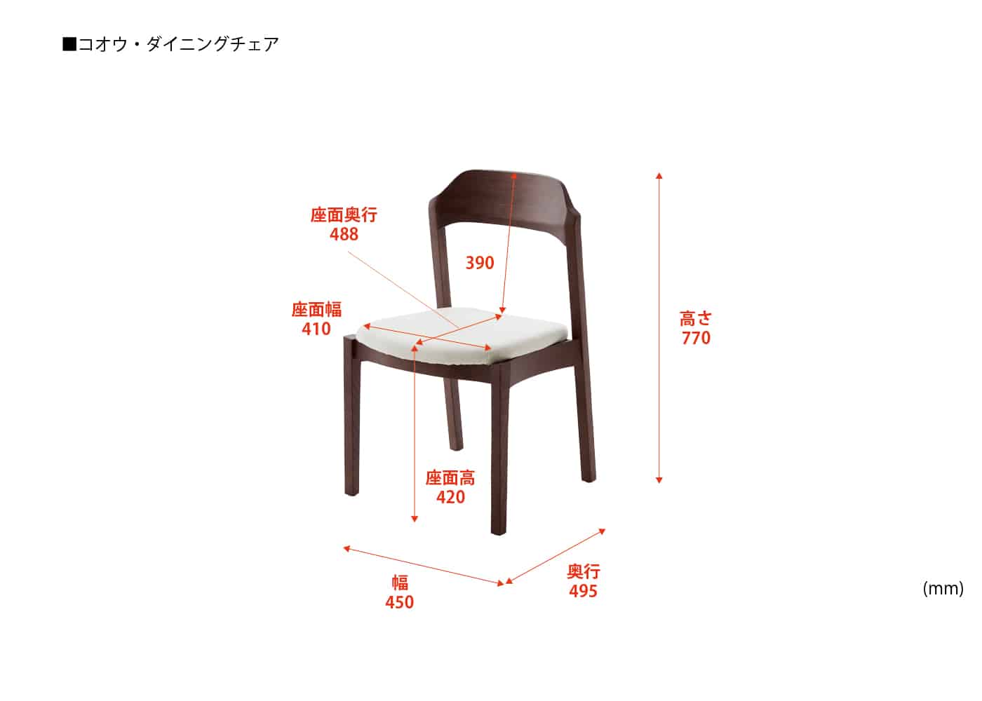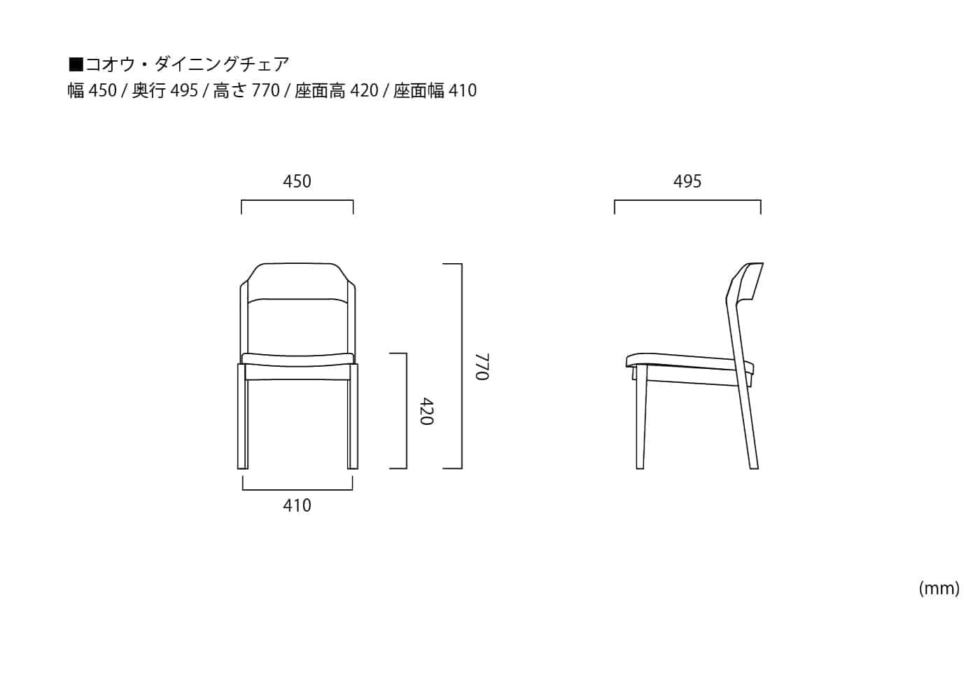 幅450 / 奥行495 / 高さ770 / 座面高420 ※単位は mm