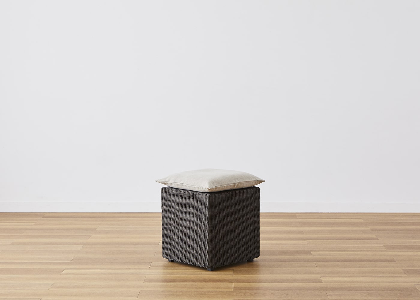 繊細に編み込まれたラタン素材のキューブ・スツール&テーブル。ソファ脇に設置すれば、日々使用するアイテムを置いたり、花を飾るなど、サイドテーブルとしても使用可能です。