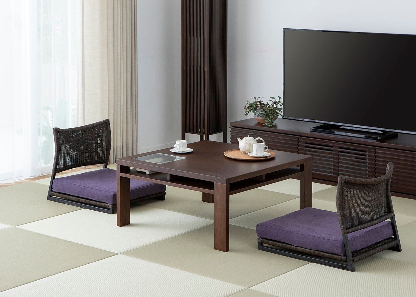 大切な人と座椅子でゆっくりお茶を飲みながら、日本人らしい床に近い暮らしを楽しんでみては。