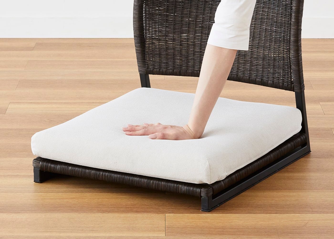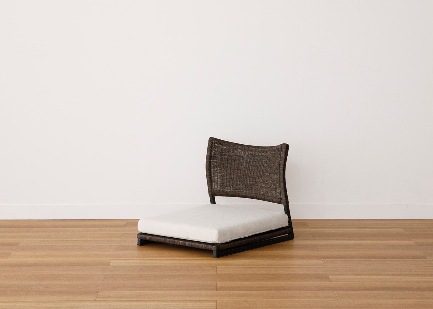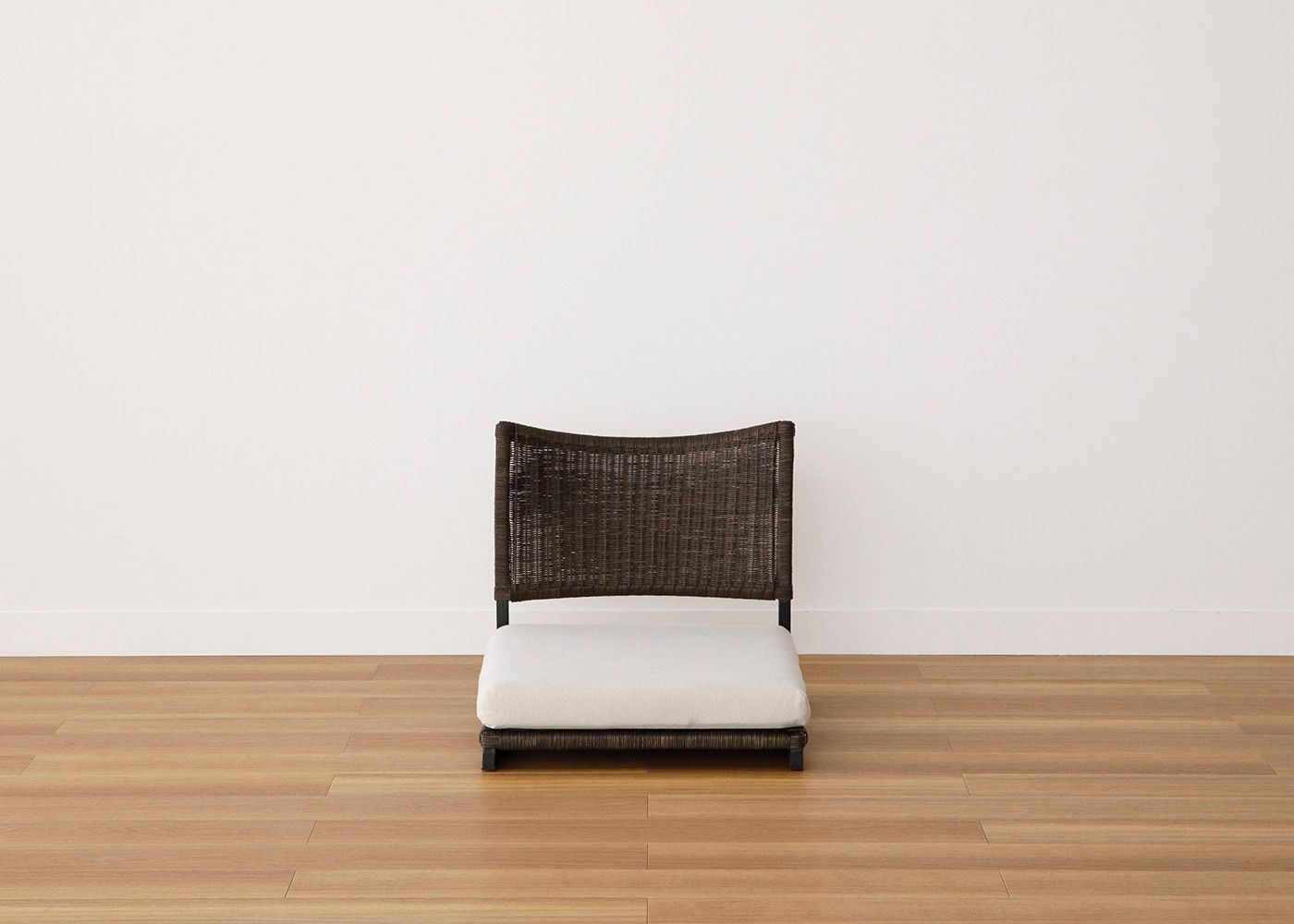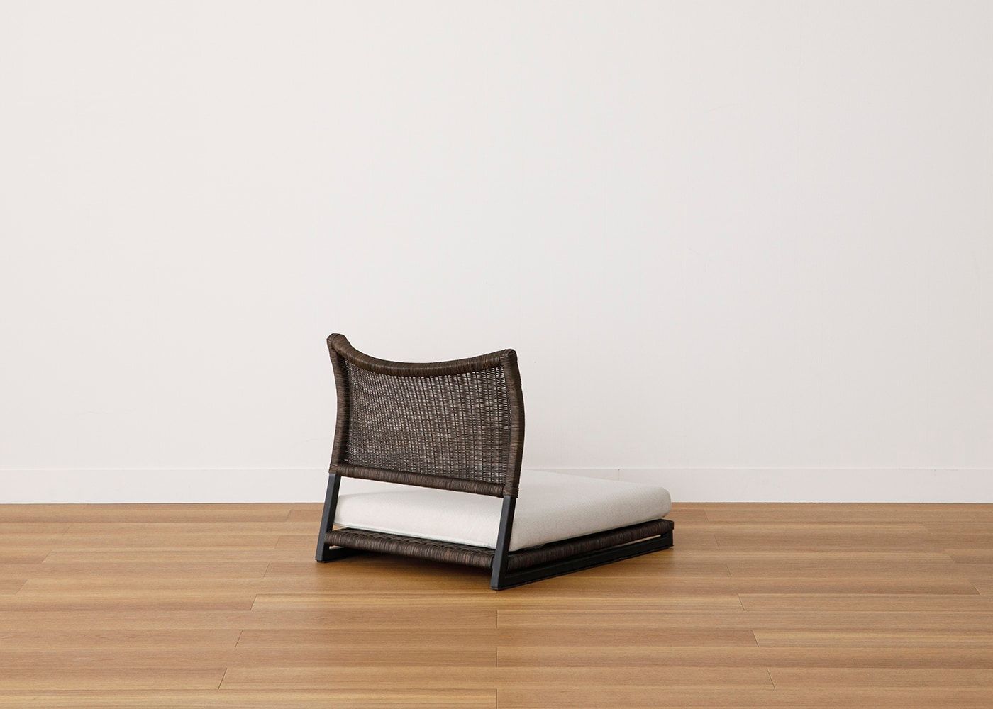 ラタンとアイアンフレームの組み合わせによる、素材の温もりとスタイリッシュなデザインが魅力の座椅子 (ラタン)。床に近い暮らしはリラックス効果が高いと言われており、ラタンの繊細な編み目や素材感によってさらに癒しの効果を高めてくれます。