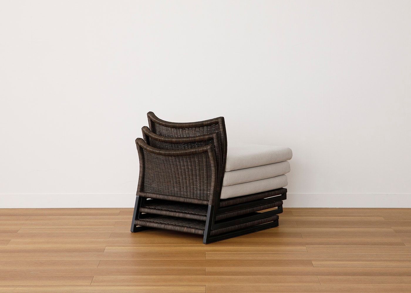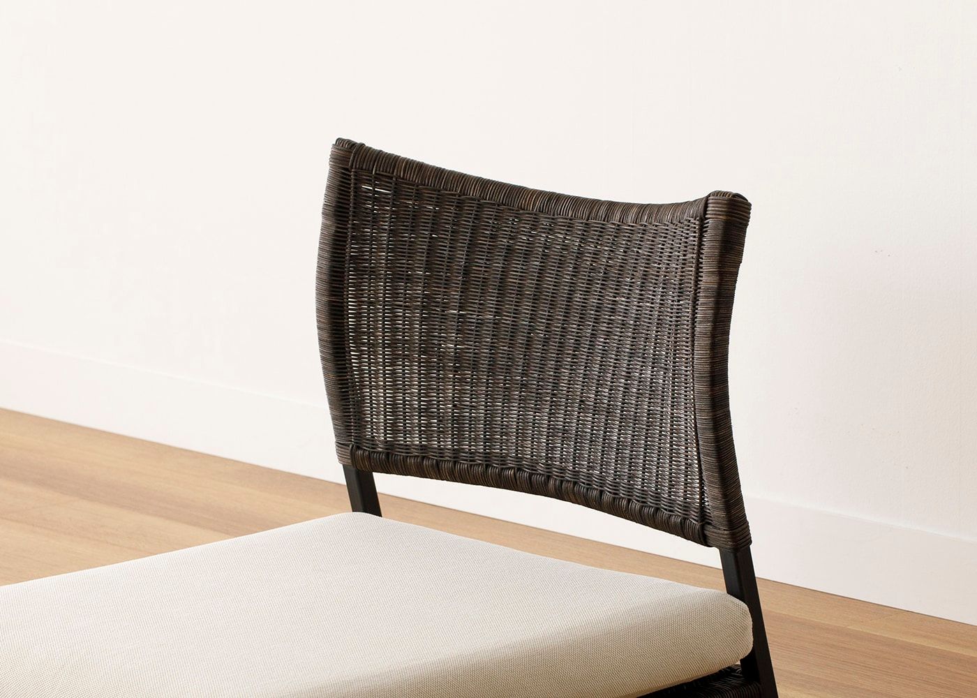 ラタンの素材感とアイアンフレームの抜け感が調和したa.flatらしいデザインにこだわりました。足元や背もたれに抜けのあるフレームが、軽やかで涼しげな印象をあたえてくれます。