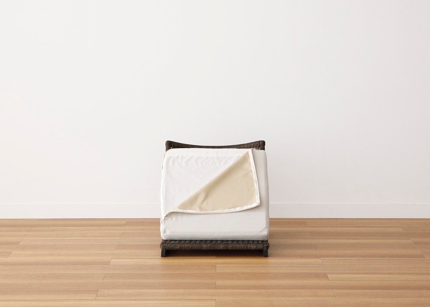 付属カバーは、わずかに起毛した上品で柔らかな風合いのポリエステル100%のファブリックです。シワになり難く摩擦に強いのも特長で、表面に撥水加工もついた機能性に優れたカバーです。