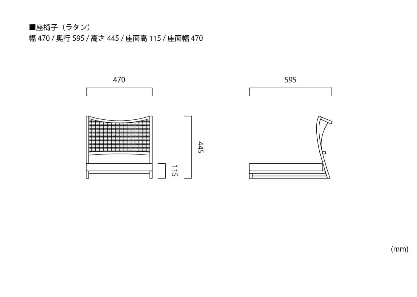 幅470 / 奥行595 / 高さ445 / 座面高115 / 座面幅400 / 座面奥行350