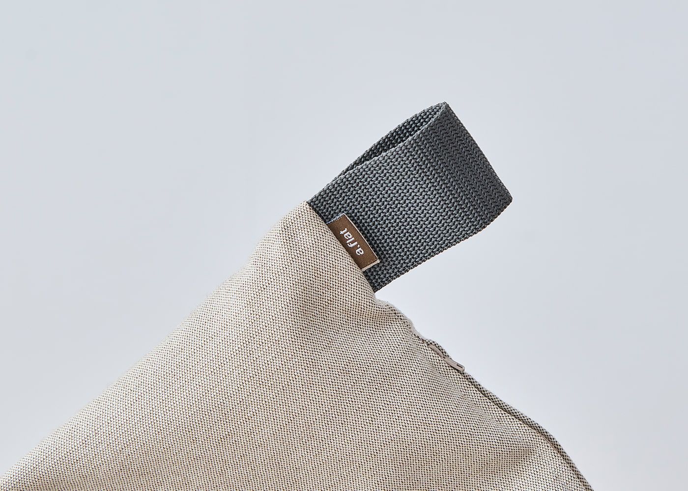 持ち手付きで手軽に持ち運べるデザイン。ワンポイントのa.flatのタグが、さりげないアクセントを添えます。