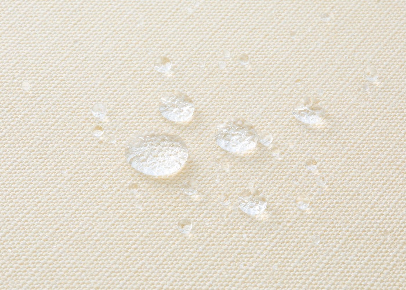 大きな水の粒がコロコロ転がるほどの強力なエクストリーム撥水加工を施しています。防汚加工もプラスしているため、うっかりワインをこぼしてもワインの色が付きにくいファブリックです。