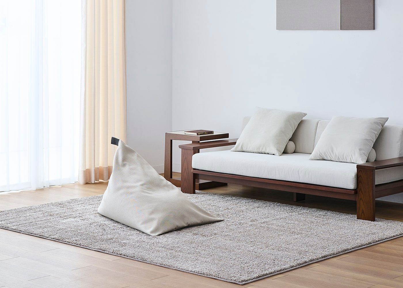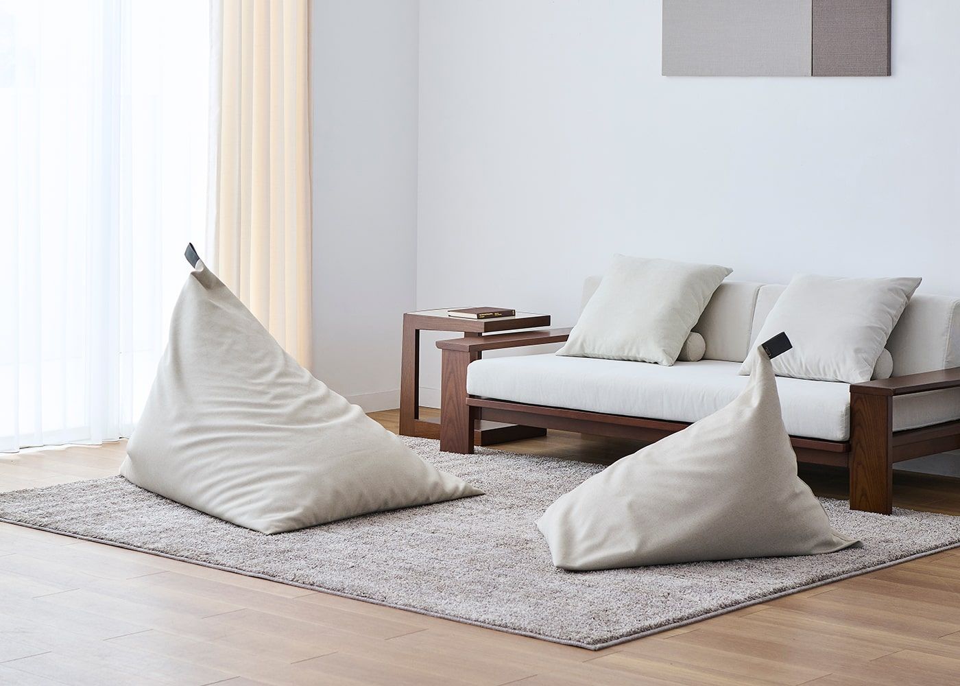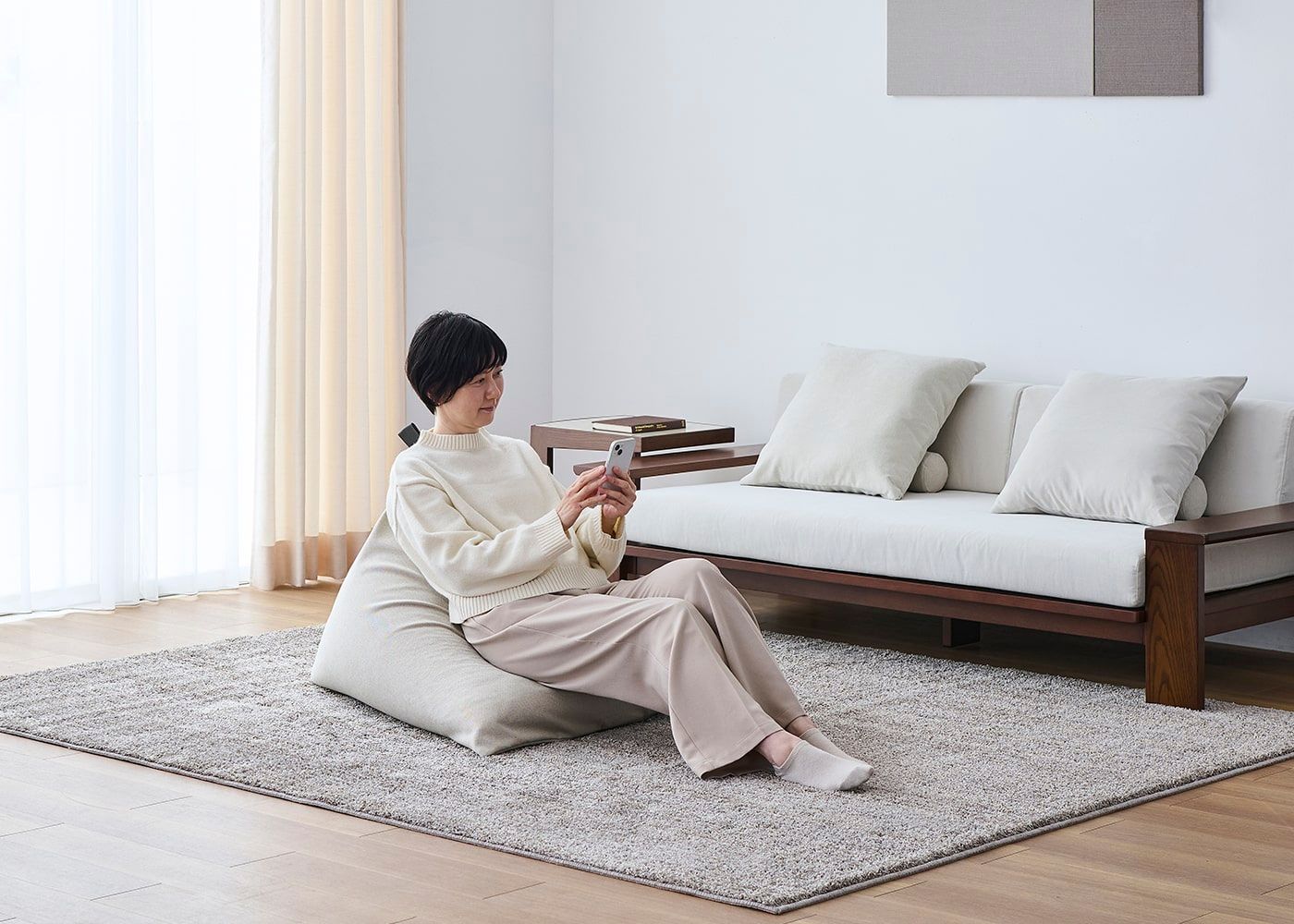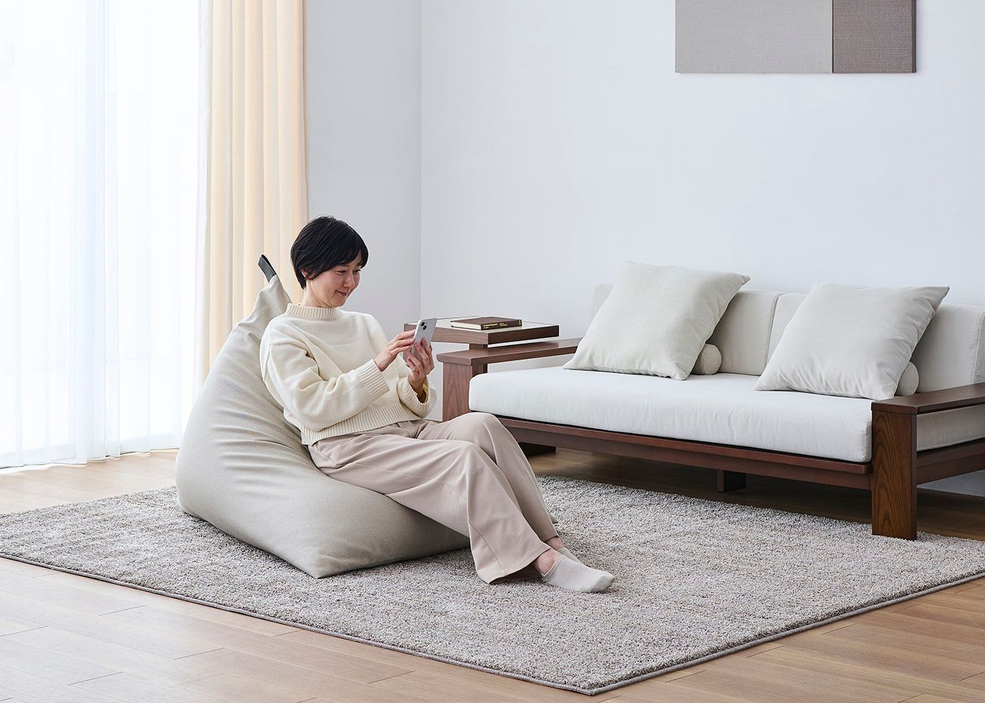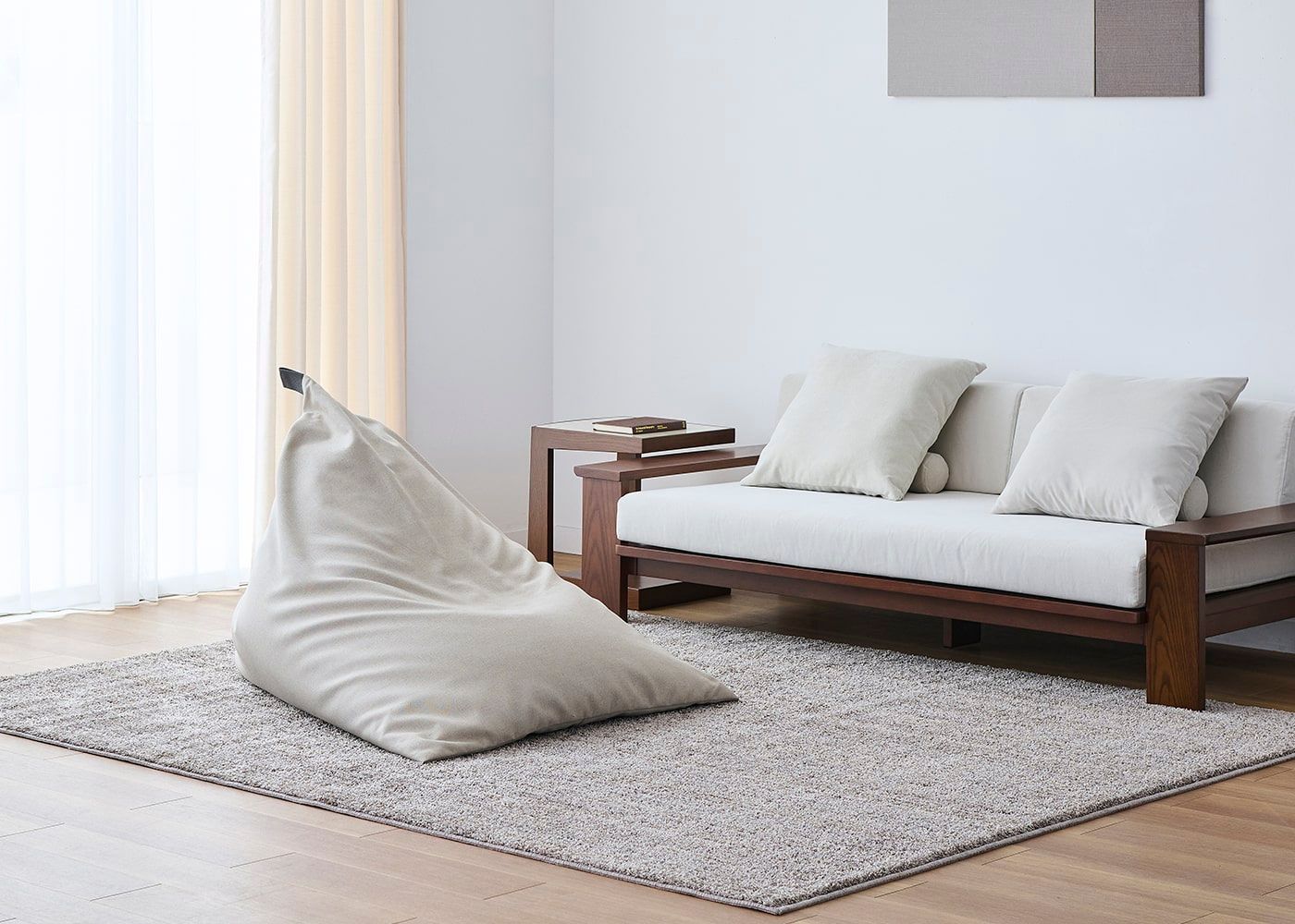 ラフな姿勢で座りたい方は、ソファ前にビーズクッションを置いてみましょう。体の動きに合わせてビーズが流動するため、さまざまな姿勢にやさしくフィットします。 ソファに座った際の足置きとしても使え、リビングでの過ごし方の幅が広がります。