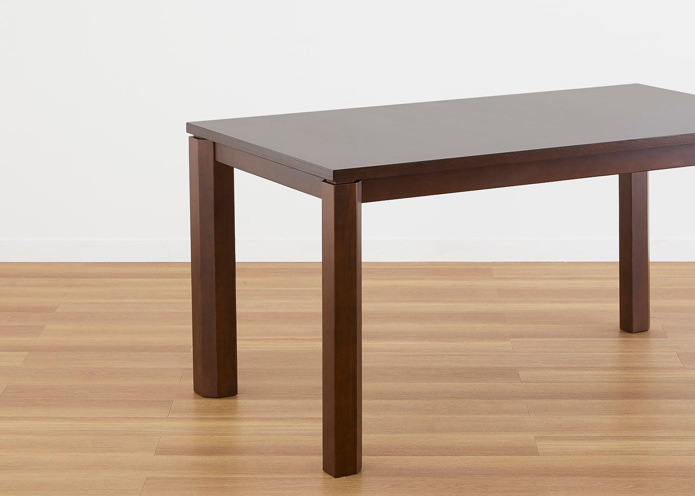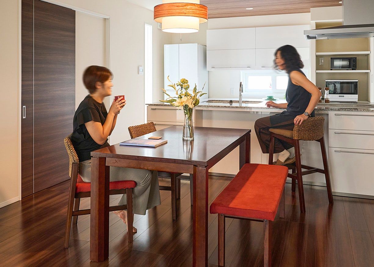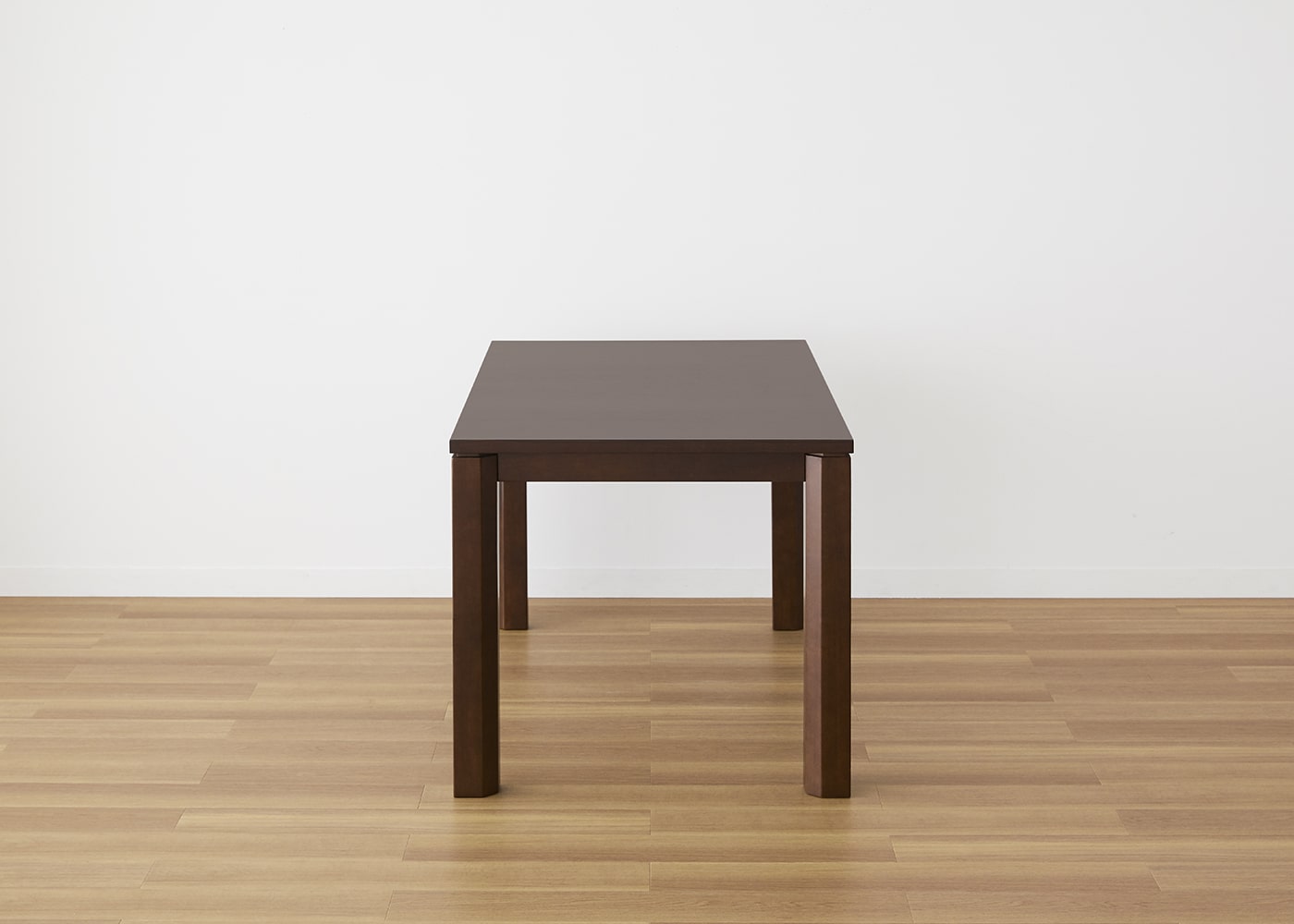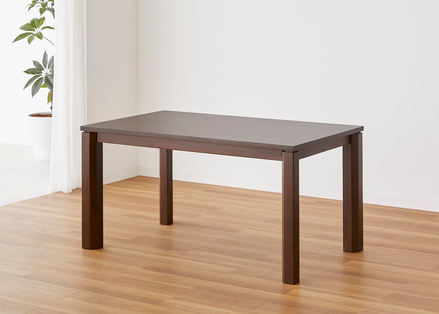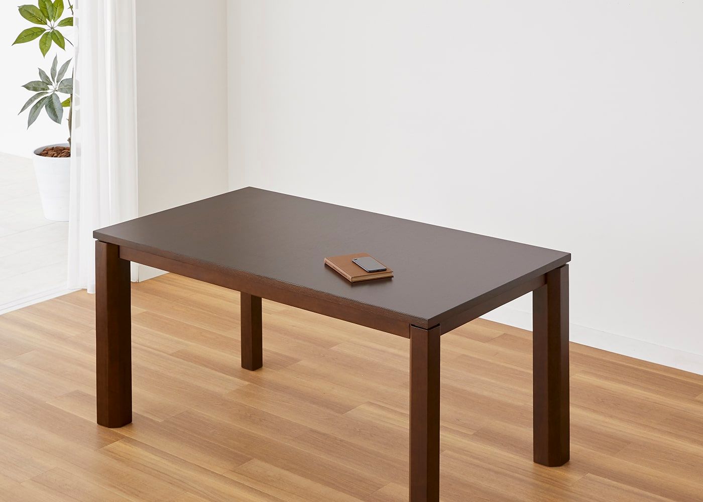 深みのある色味の天板は木材の質感を活かし、食事スペースにあたたかさを演出。また、