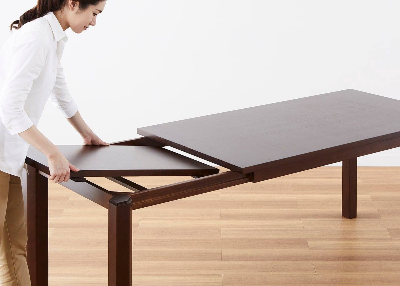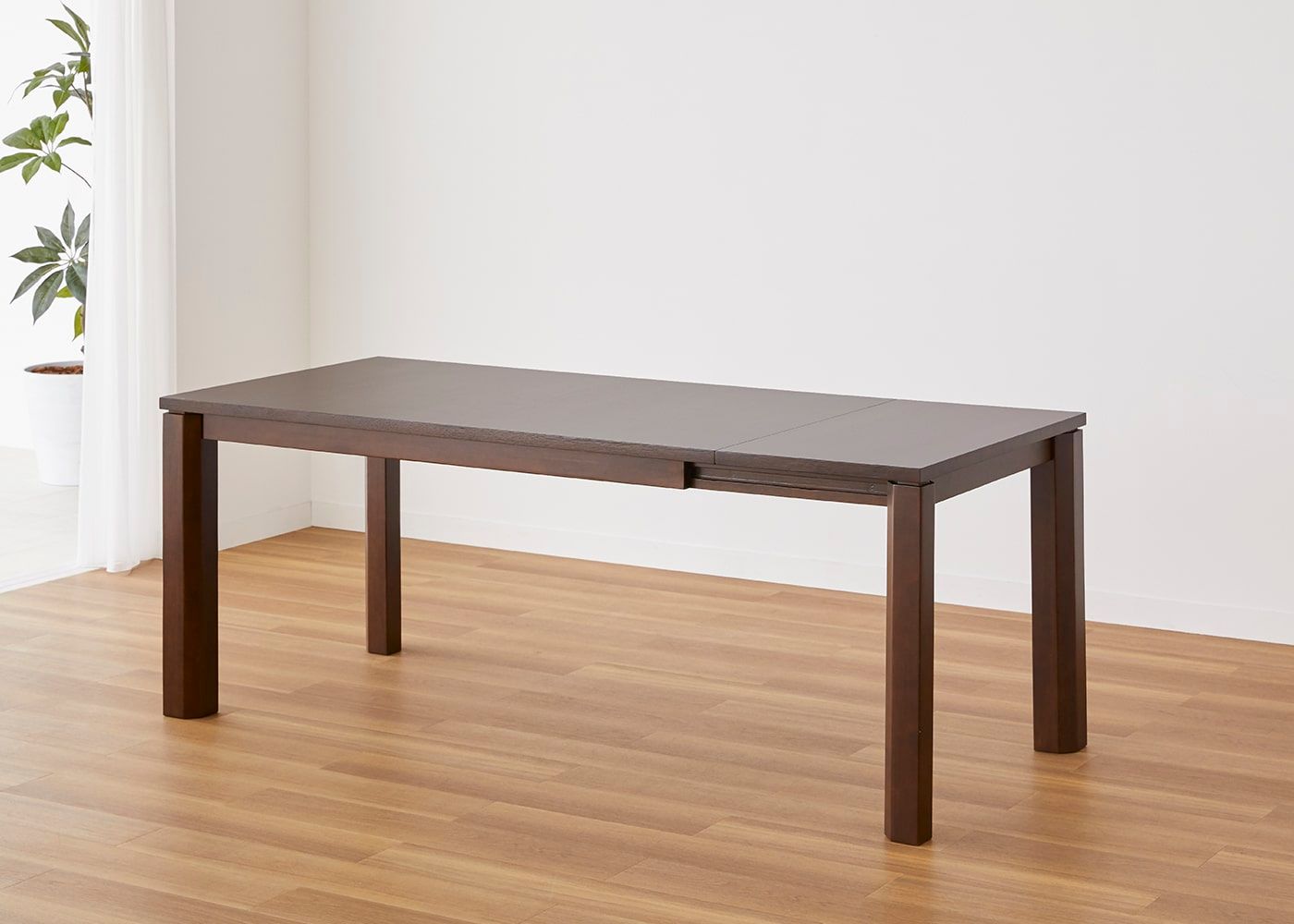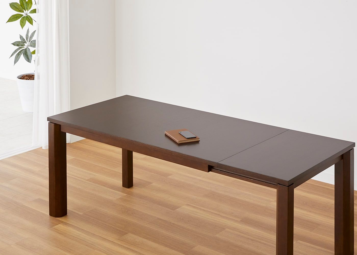 ダークブラウンカラーのエクステンション・ダイニングテーブルを、