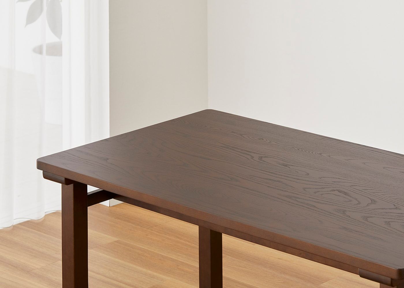 厚さ30mmのアッシュ無垢材を贅沢に使用。お子さまがいるご家庭でも安心して使えるよう、天板の角に丸みを持たせるなど、細かいところにも配慮した設計です。
