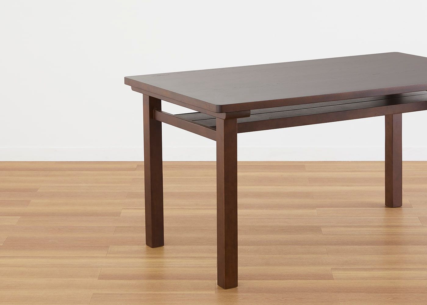 どの角度から見てもすっきりとしたフォルム。脚間が広く設計されているため、出入りがしやすく、椅子の収まりにもゆとりがあります。実用性と美しさを兼ね備えたダイニングテーブルです。