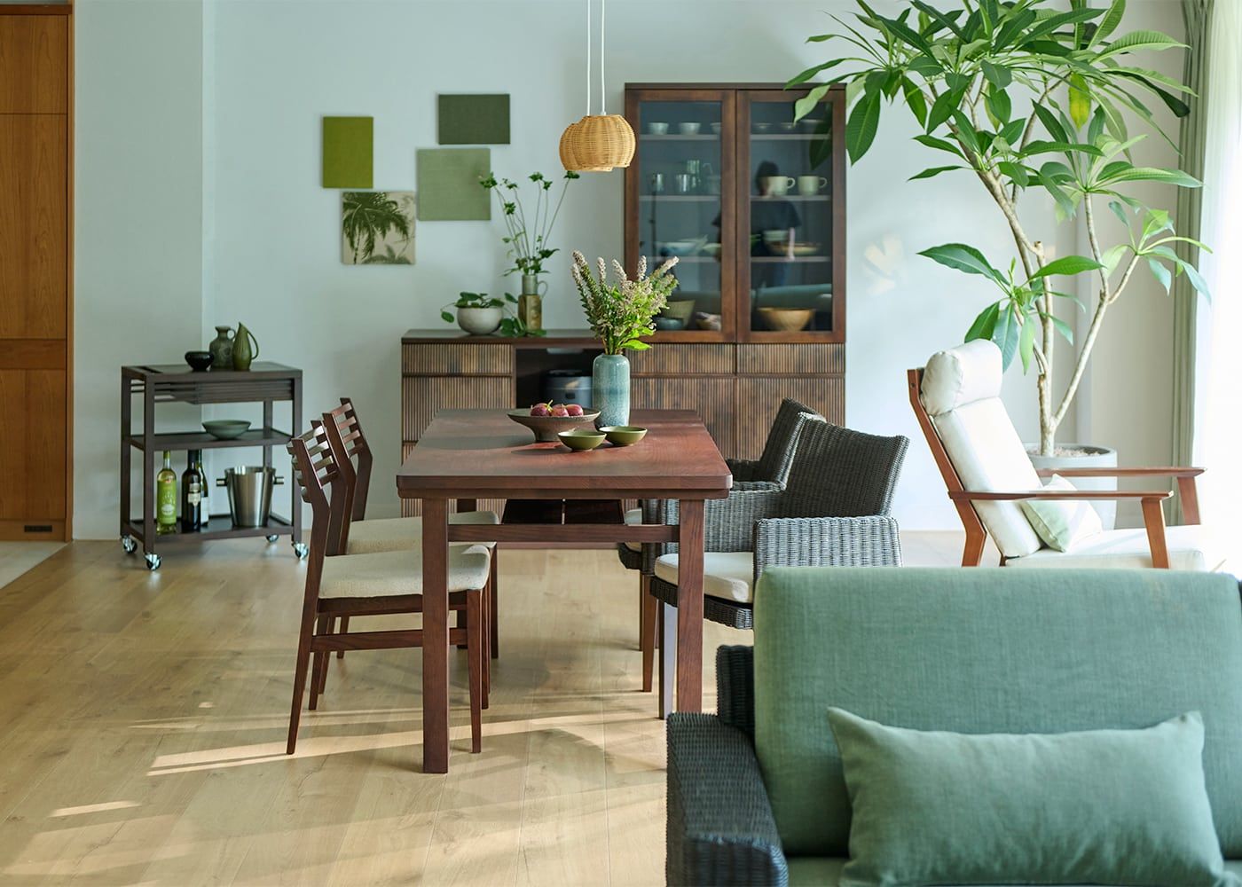無垢材と好相性なグリーンのカラーコーデ