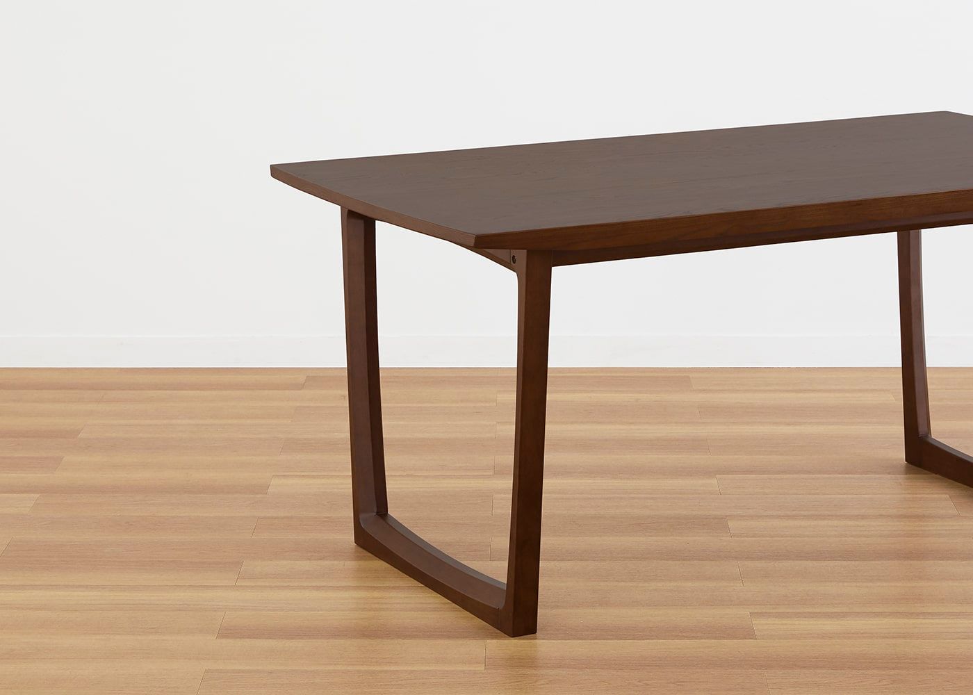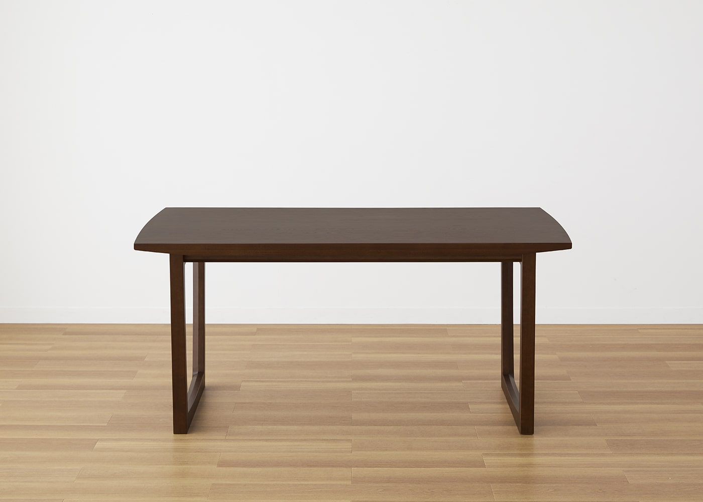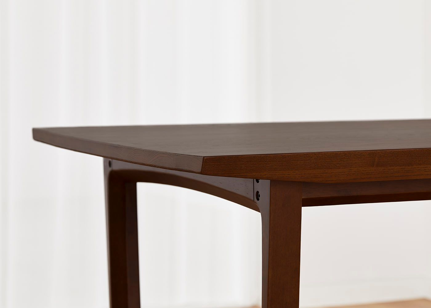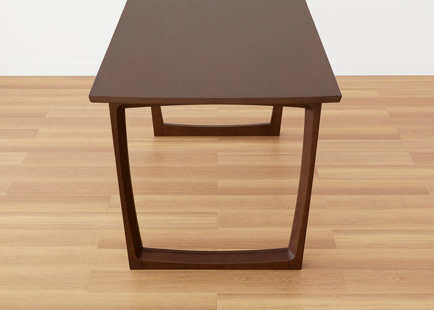 両側に緩やかなカーブを描いた、船の甲板を彷彿とさせる天板形状。幅1600mm、奥行850mmの大人4人がゆったりと過ごせる天板サイズです。