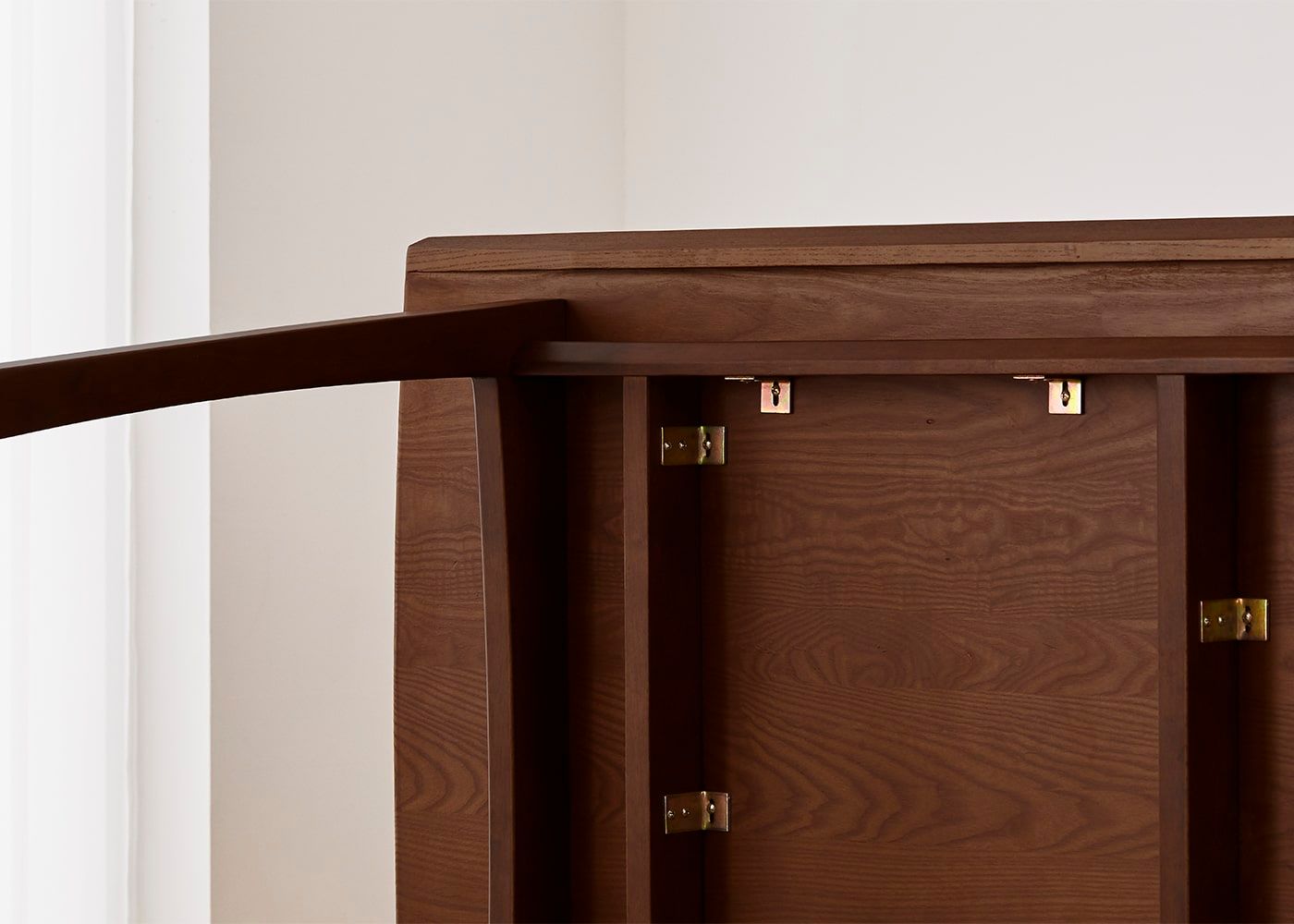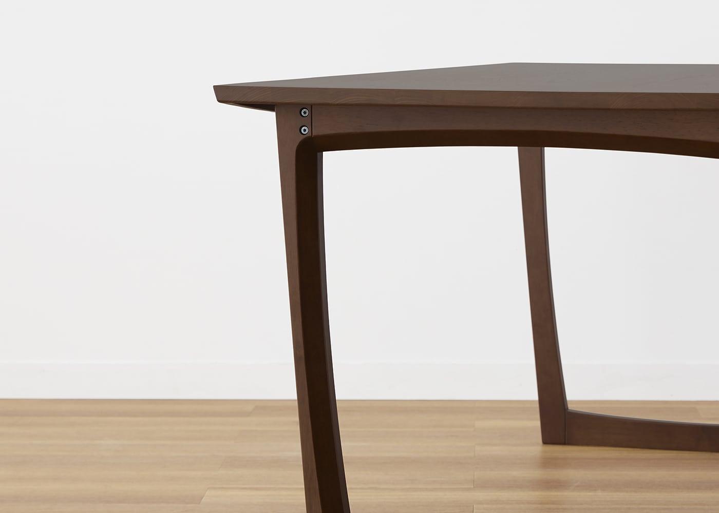 円弧を描いた天板のフォルム。緩やかな曲線が空間にやさしい印象を与えてくれます。お子様がいるご家庭でも安心して使える形状です。