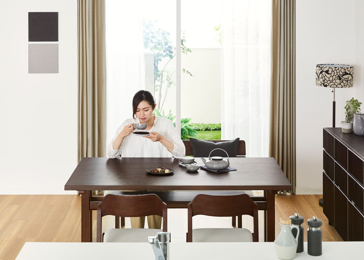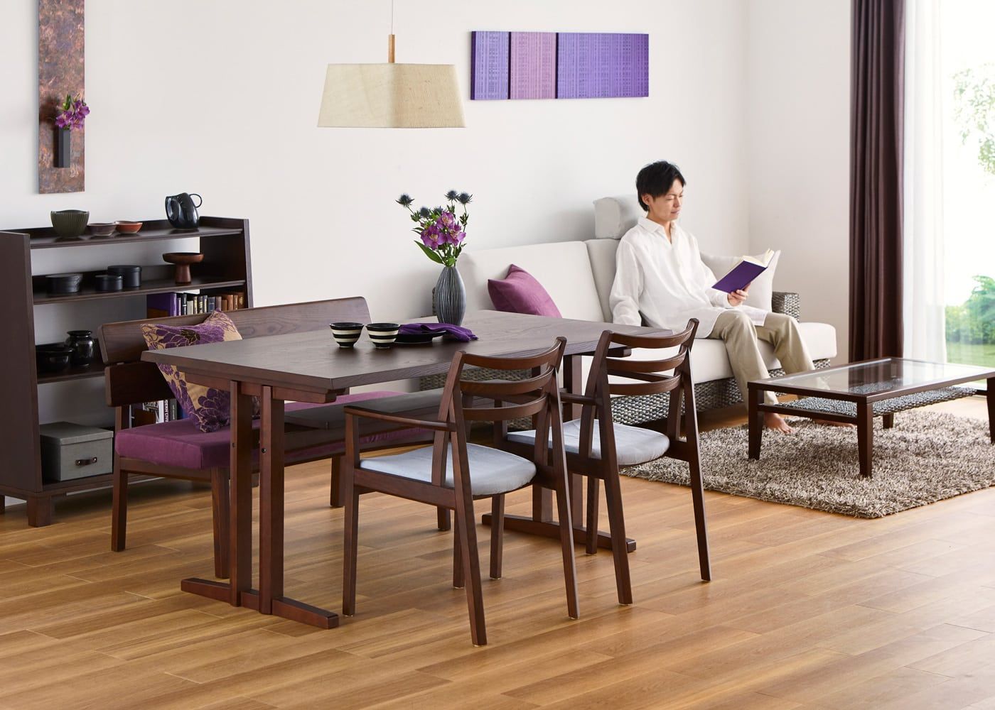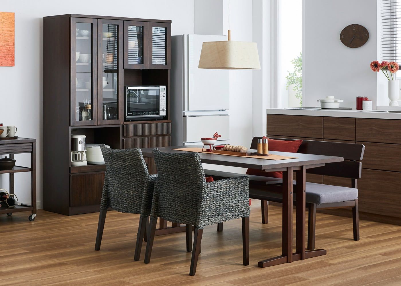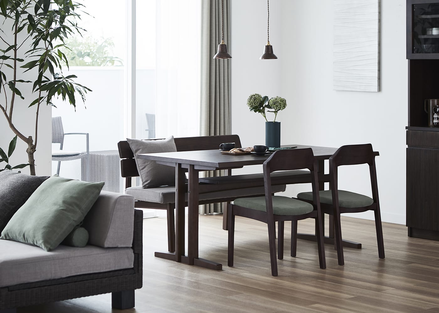 無垢材の素材感や、ダイニングベンチとも合わせやすいスタイリッシュなデザインが魅力です。