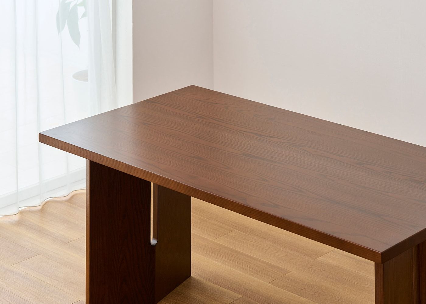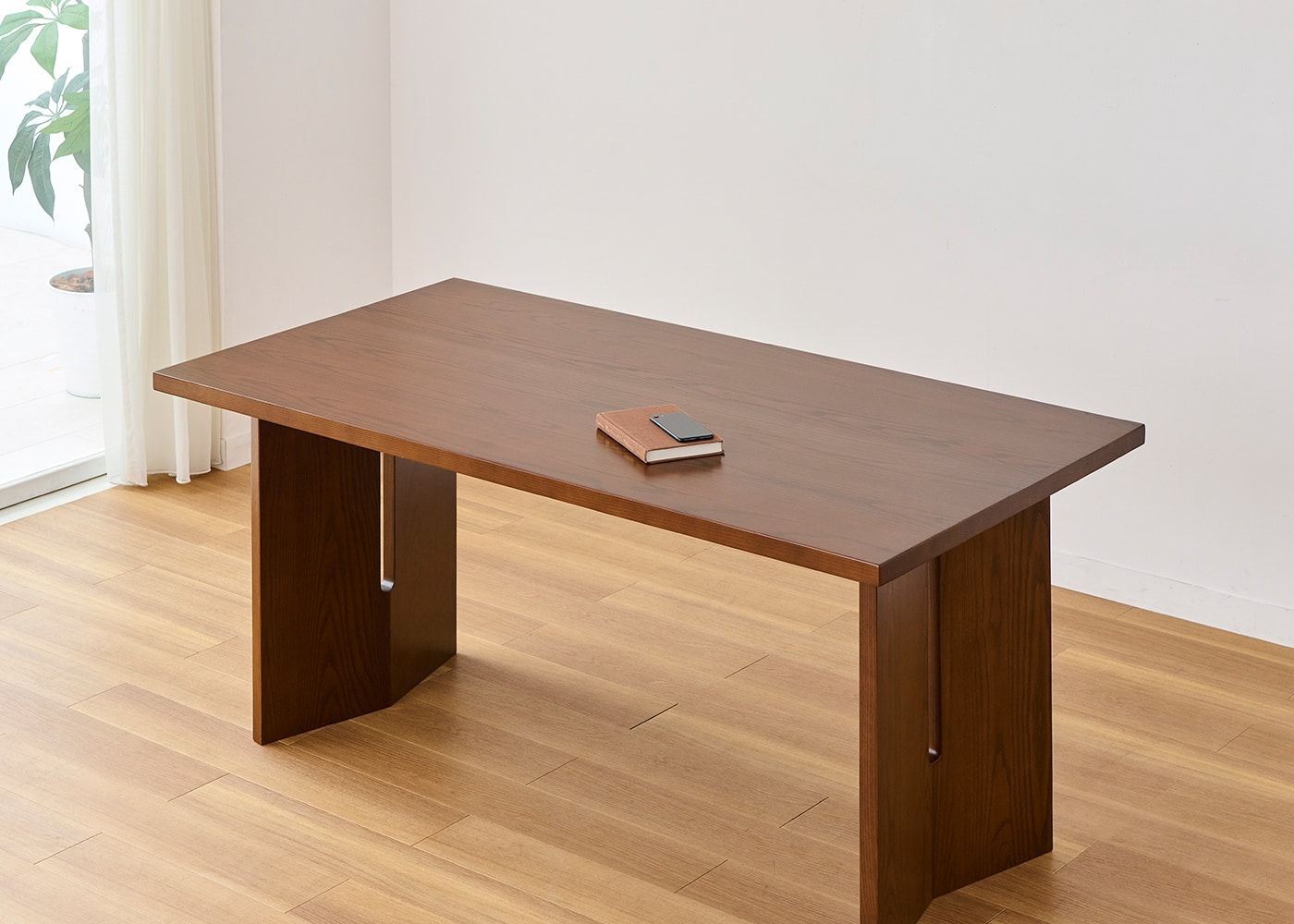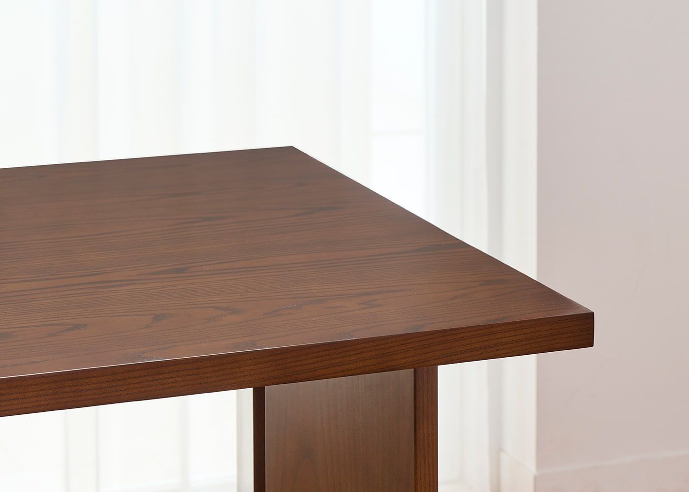 厚さ35mmのアッシュ無垢材を贅沢に使用。天板の木端を潔く垂直にカットすることで、スクエアでソリッドな印象に。天板の存在感がより高まります。