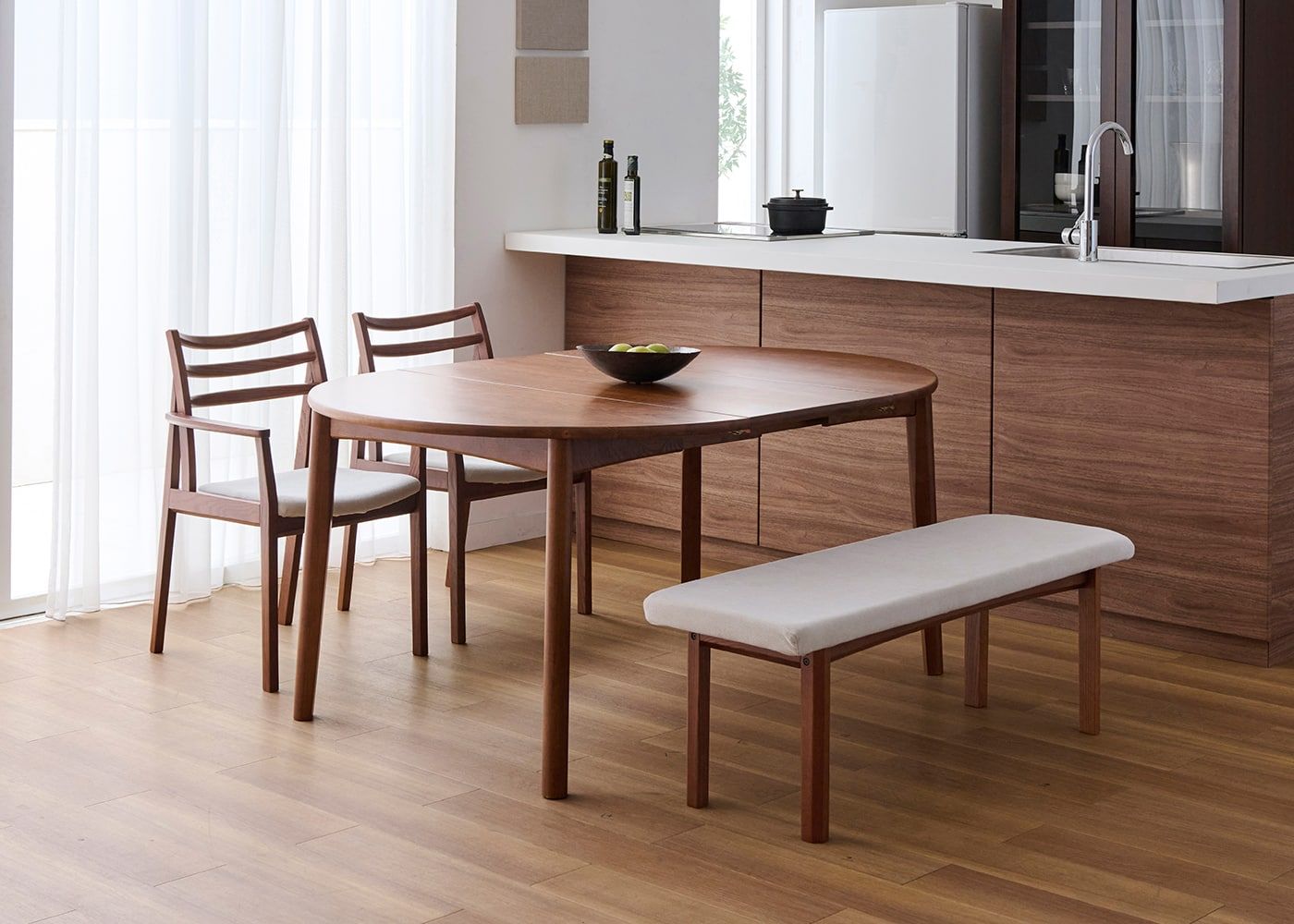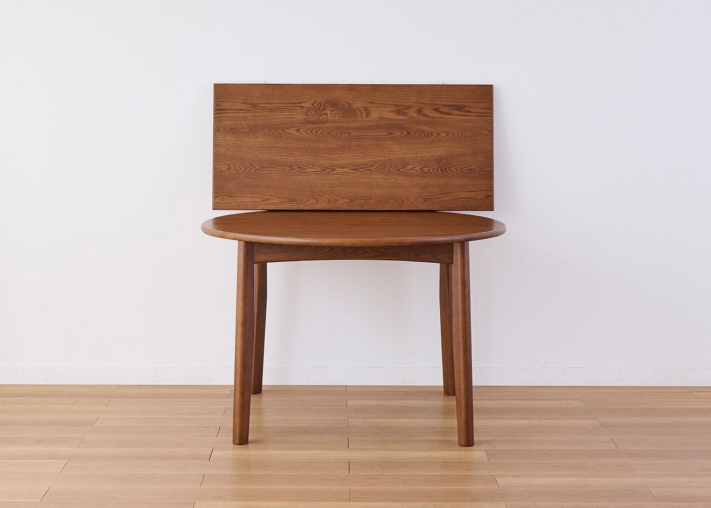 伸長例:幅1100mmから幅1600mmに伸長すれば、4人掛けとしても使える便利なテーブルです。(写真はv02 中天板 (GB)、
